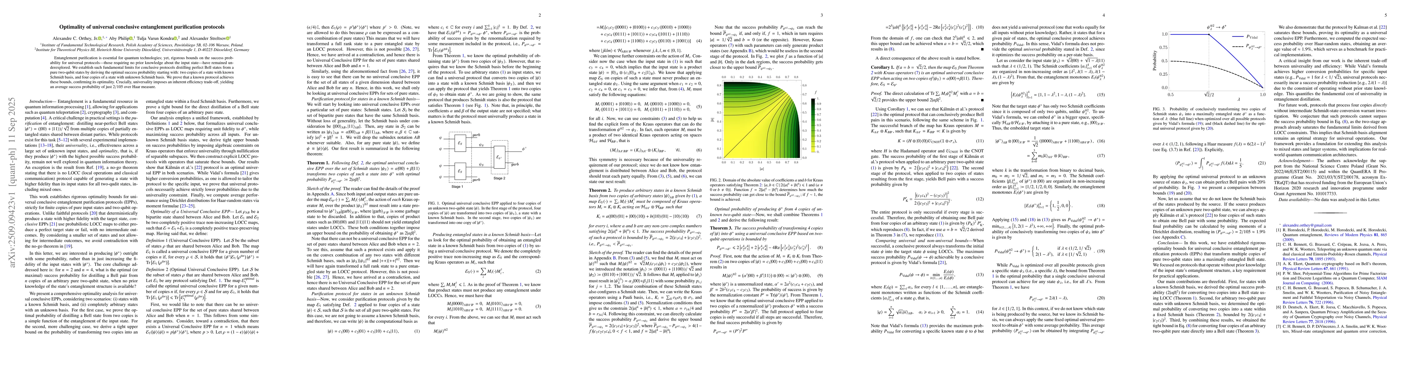 Entanglement purification is essential for quantum technologies; yet, rigorous bounds on the success probability for universal protocols -- those requiring no prior knowledge about the input state -- have remained underexplored. We establish such fundamental limits for conclusive protocols distilling perfect Bell states from a pure two-qubit states by deriving the optimal success probability starting with: two copies of a state with known Schmidt basis, and four copies of a state with unknown Schmidt basis. We prove that a known protocol achieves these bounds, confirming its optimality. Crucially, universality imposes an inherent efficiency trade-off, yielding an average success probability of just $2/105$ over Haar measure.