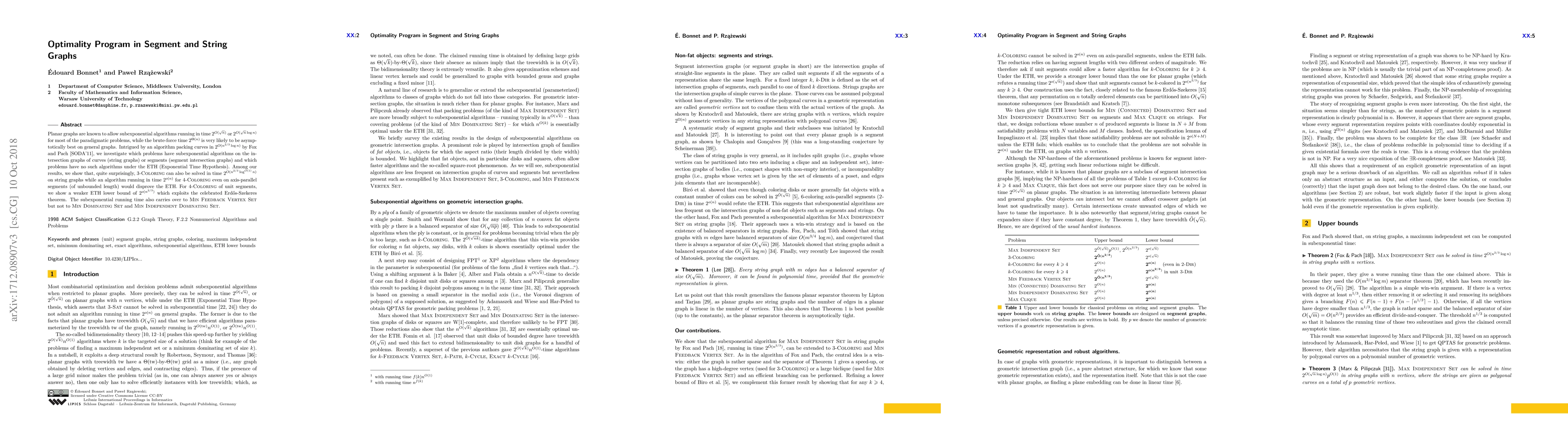 Planar graphs are known to allow subexponential algorithms running in time $2^{O(\sqrt n)}$ or $2^{O(\sqrt n \log n)}$ for most of the paradigmatic problems, while the brute-force time $2^{\Theta(n)}$ is very likely to be asymptotically best on general graphs. Intrigued by an algorithm packing curves in $2^{O(n^{2/3}\log n)}$ by Fox and Pach [SODA'11], we investigate which problems have subexponential algorithms on the intersection graphs of curves (string graphs) or segments (segment intersection graphs) and which problems have no such algorithms under the ETH (Exponential Time Hypothesis). Among our results, we show that, quite surprisingly, 3-Coloring can also be solved in time $2^{O(n^{2/3}\log^{O(1)}n)}$ on string graphs while an algorithm running in time $2^{o(n)}$ for 4-Coloring even on axis-parallel segments (of unbounded length) would disprove the ETH. For 4-Coloring of unit segments, we show a weaker ETH lower bound of $2^{o(n^{2/3})}$ which exploits the celebrated Erd\H{o}s-Szekeres theorem. The subexponential running time also carries over to Min Feedback Vertex Set but not to Min Dominating Set and Min Independent Dominating Set.