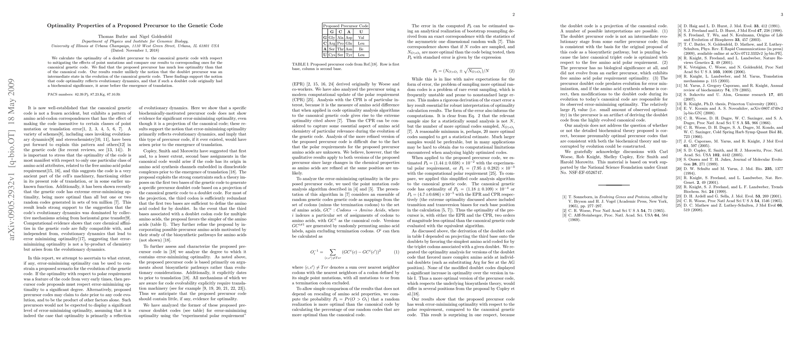 This study evaluates the optimality of a doublet precursor to the canonical genetic code in reducing point mutations, finding it significantly less optimal than the canonical code. The results suggest that the doublet precursor was unlikely an evolutionary intermediate, supporting the idea that code optimality reflects evolutionary dynamics and that any biochemical significance of the doublet code arose prior to the emergence of translation.