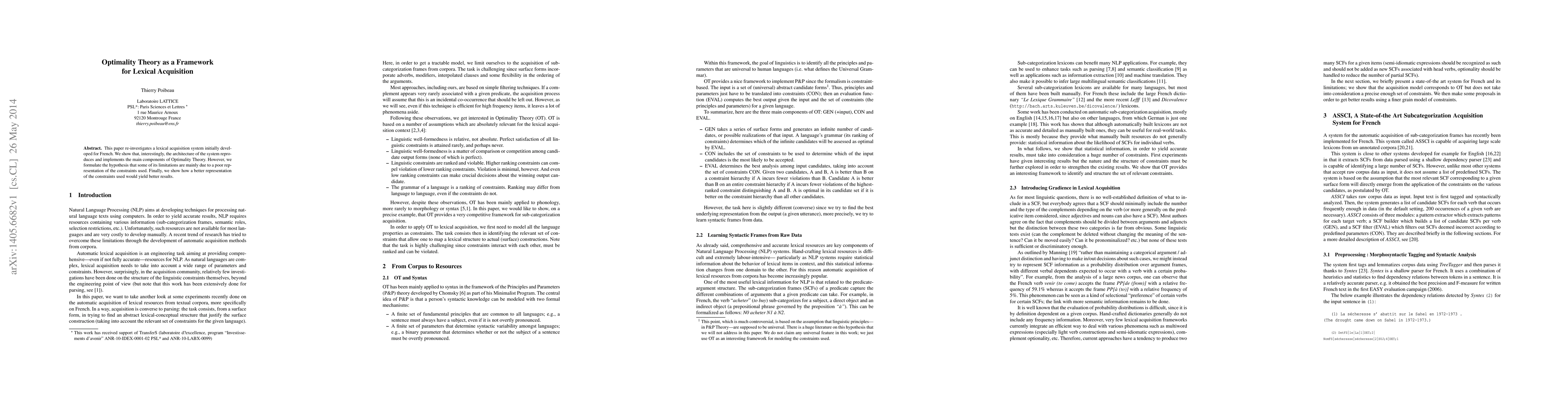 The paper presents a novel approach to lexical acquisition using Optimality Theory, providing a framework for integrating linguistic constraints within automatic processing systems.
