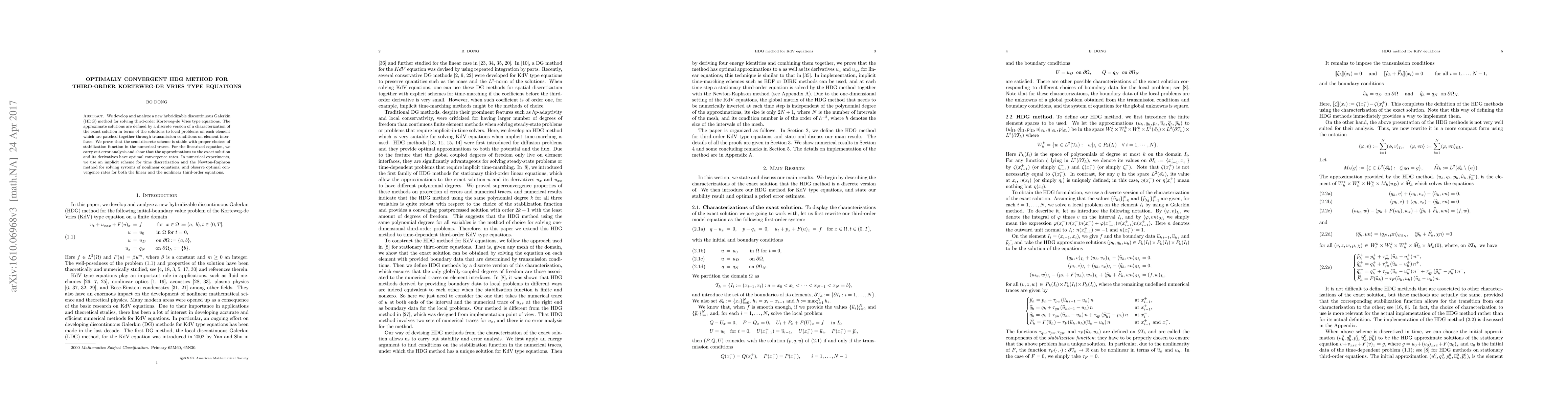 This paper develops a hybridizable discontinuous Galerkin (HDG) method for third-order Korteweg-de Vries type equations, proving stability and optimal convergence rates for both linear and nonlinear forms. Numerical experiments confirm these theoretical results.