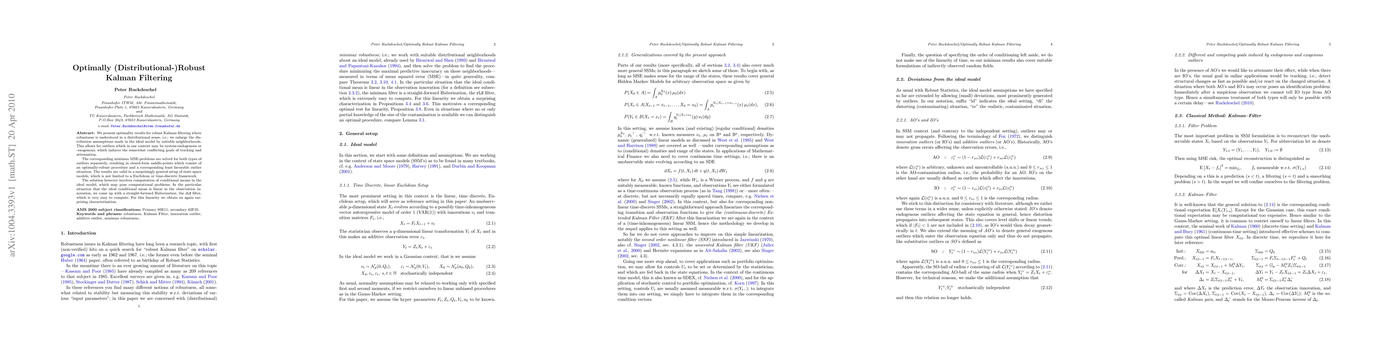 This paper develops optimally robust Kalman filtering methods that account for distributional outliers, solving minimax mean squared error problems to achieve robust tracking and attenuation. A computationally efficient Huberization method, the rLS filter, is introduced for linear conditional mean models.