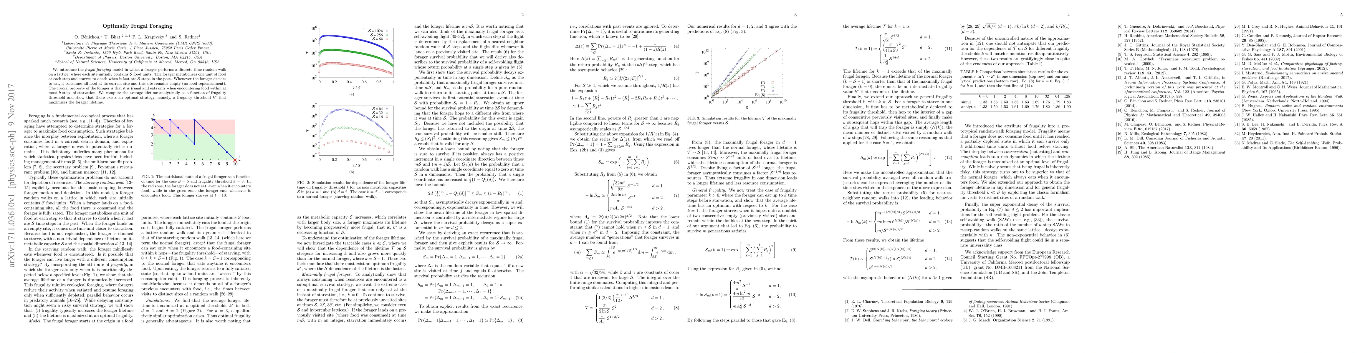 A forager model is introduced where a forager eats only when food is within a certain distance of starvation, and the optimal frugality threshold maximizes lifetime.