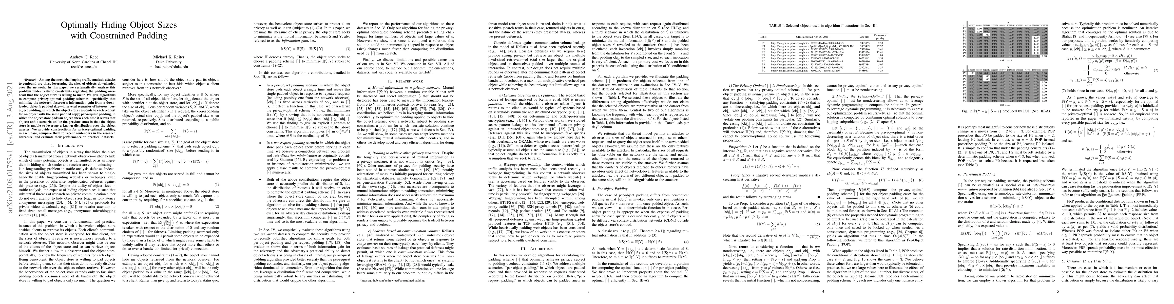 This paper develops algorithms to compute privacy-optimal padding schemes that minimize network observers' information gain from object sizes under realistic padding constraints. It evaluates these schemes in scenarios of per-object and per-request padding, and compares their performance against existing methods using practical datasets.