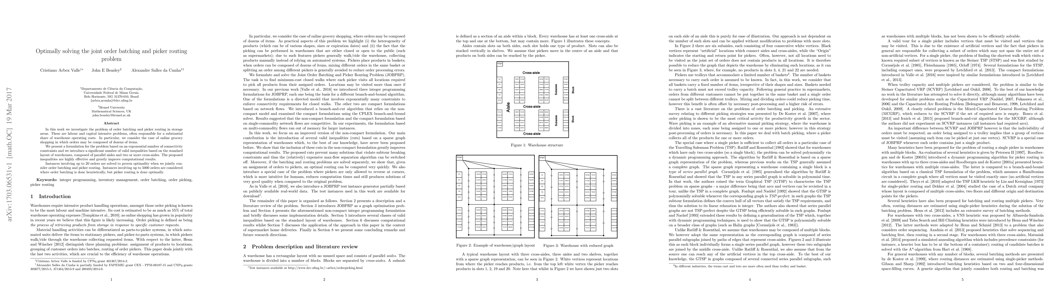 This paper addresses the joint order batching and picker routing problem in warehouses, introducing effective valid inequalities to improve computational efficiency. The proposed model solves small instances to optimality and applies heuristic batching with optimal routing for larger instances, significantly reducing operational costs.