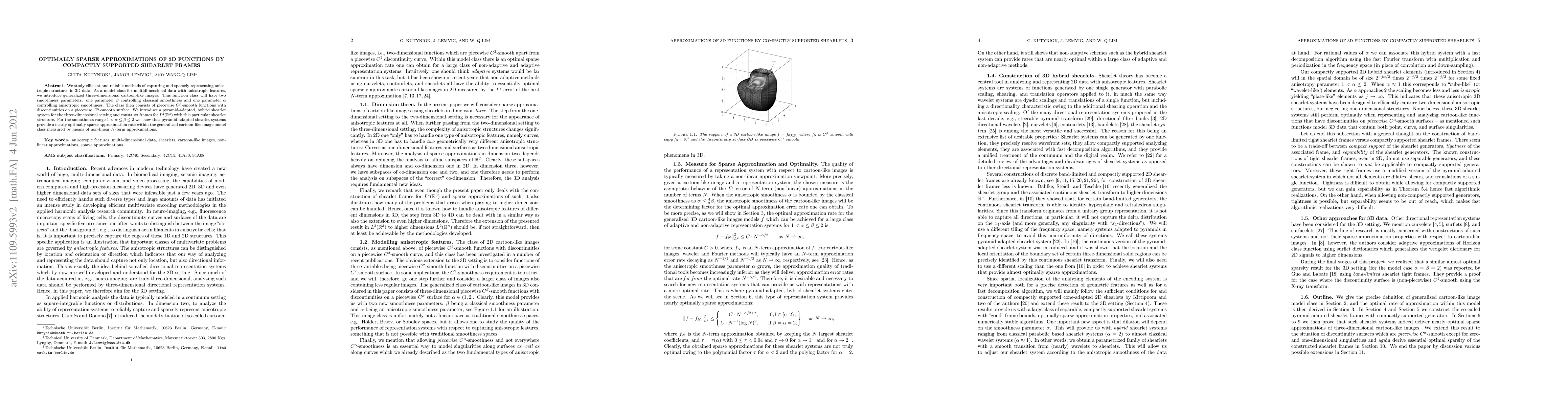 We study efficient and reliable methods of capturing and sparsely representing anisotropic structures in 3D data. As a model class for multidimensional data with anisotropic features, we introduce generalized three-dimensional cartoon-like images. This function class will have two smoothness parameters: one parameter \beta controlling classical smoothness and one parameter \alpha controlling anisotropic smoothness. The class then consists of piecewise C^\beta-smooth functions with discontinuities on a piecewise C^\alpha-smooth surface. We introduce a pyramid-adapted, hybrid shearlet system for the three-dimensional setting and construct frames for L^2(R^3) with this particular shearlet structure. For the smoothness range 1<\alpha =< \beta =< 2 we show that pyramid-adapted shearlet systems provide a nearly optimally sparse approximation rate within the generalized cartoon-like image model class measured by means of non-linear N-term approximations.