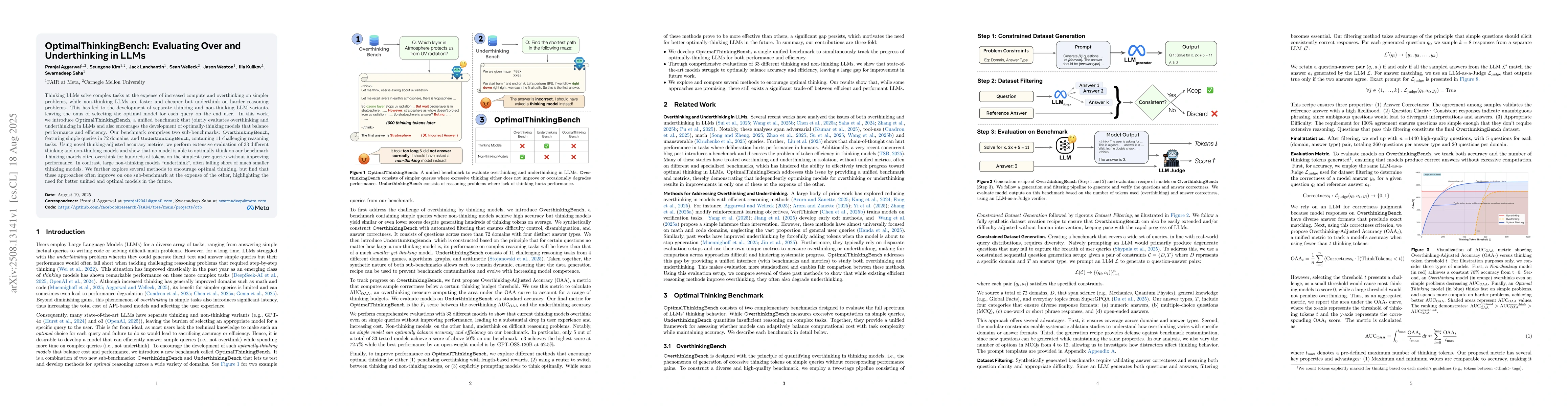 Thinking LLMs solve complex tasks at the expense of increased compute and overthinking on simpler problems, while non-thinking LLMs are faster and cheaper but underthink on harder reasoning problems. This has led to the development of separate thinking and non-thinking LLM variants, leaving the onus of selecting the optimal model for each query on the end user. In this work, we introduce OptimalThinkingBench, a unified benchmark that jointly evaluates overthinking and underthinking in LLMs and also encourages the development of optimally-thinking models that balance performance and efficiency. Our benchmark comprises two sub-benchmarks: OverthinkingBench, featuring simple queries in 72 domains, and UnderthinkingBench, containing 11 challenging reasoning tasks. Using novel thinking-adjusted accuracy metrics, we perform extensive evaluation of 33 different thinking and non-thinking models and show that no model is able to optimally think on our benchmark. Thinking models often overthink for hundreds of tokens on the simplest user queries without improving performance. In contrast, large non-thinking models underthink, often falling short of much smaller thinking models. We further explore several methods to encourage optimal thinking, but find that these approaches often improve on one sub-benchmark at the expense of the other, highlighting the need for better unified and optimal models in the future.