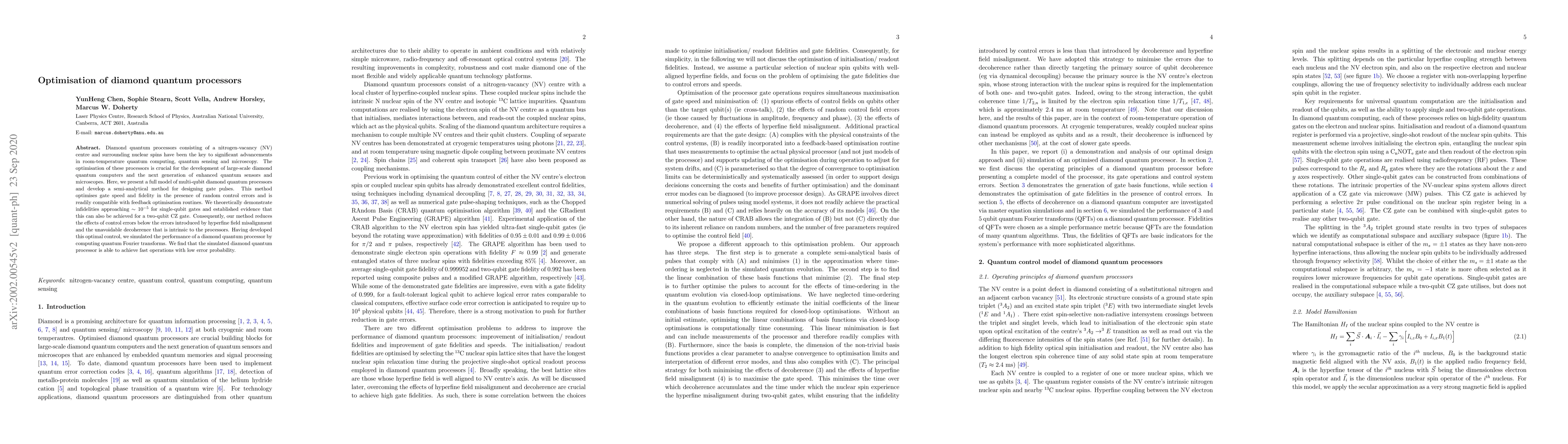 Diamond quantum processors consisting of a nitrogen-vacancy (NV) centre and surrounding nuclear spins have been the key to significant advancements in room-temperature quantum computing, quantum sensing and microscopy. The optimisation of these processors is crucial for the development of large-scale diamond quantum computers and the next generation of enhanced quantum sensors and microscopes. Here, we present a full model of multi-qubit diamond quantum processors and develop a semi-analytical method for designing gate pulses. This method optimises gate speed and fidelity in the presence of random control errors and is readily compatible with feedback optimisation routines. We theoretically demonstrate infidelities approaching $\sim 10^{-5}$ for single-qubit gates and established evidence that this can also be achieved for a two-qubit CZ gate. Consequently, our method reduces the effects of control errors below the errors introduced by hyperfine field misalignment and the unavoidable decoherence that is intrinsic to the processors. Having developed this optimal control, we simulated the performance of a diamond quantum processor by computing quantum Fourier transforms. We find that the simulated diamond quantum processor is able to achieve fast operations with low error probability.
