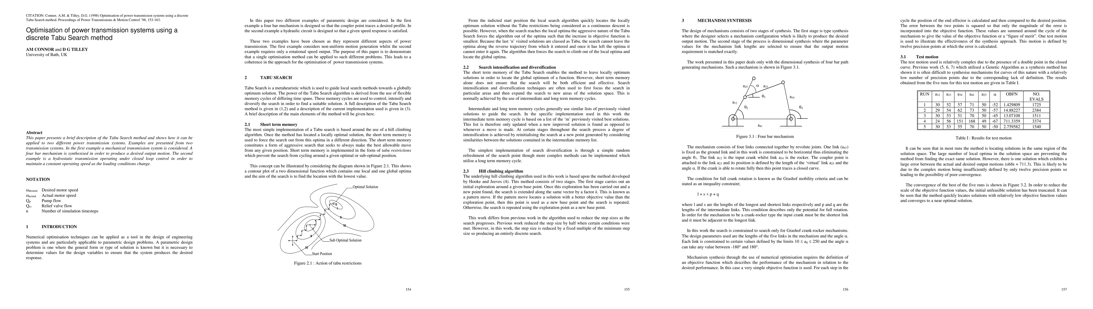 This paper presents a brief description of the Tabu Search method and shows how it can be applied to two different power transmission systems. Examples are presented from two transmission systems. In the first example a mechanical transmission system is considered. A four bar mechanism is synthesised in order to produce a desired output motion. The second example is a hydrostatic transmission operating under closed loop control in order to maintain a constant operating speed as the loading conditions change.