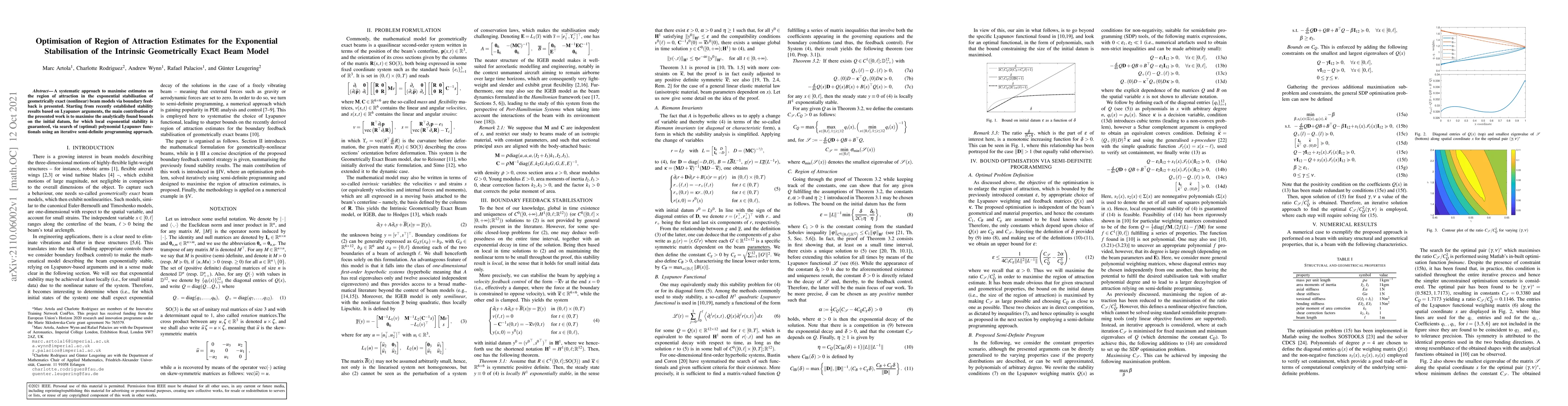 A systematic approach to maximise estimates on the region of attraction in the exponential stabilisation of geometrically exact (nonlinear) beam models via boundary feedback is presented. Starting from recently established stability results based on Lyapunov arguments, the main contribution of the presented work is to maximise the analytically found bounds on the initial datum, for which local exponential stability is guaranteed, via search of (optimal) polynomial Lyapunov functionals using an iterative semi-definite programming approach.