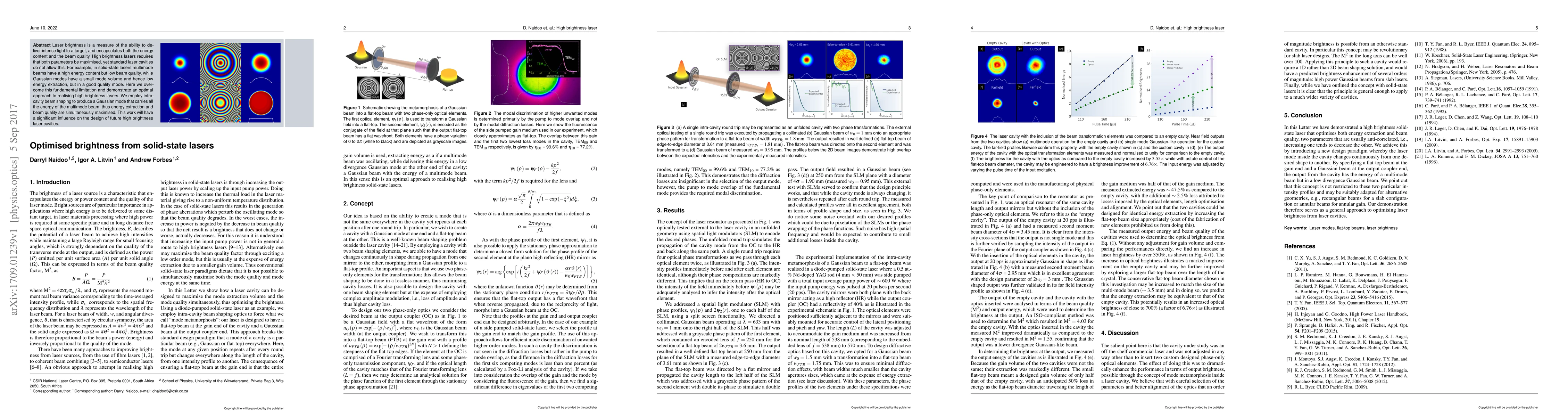 This paper presents an innovative intra-cavity beam shaping technique to optimise brightness in solid-state lasers, achieving both high energy extraction and superior beam quality by transforming multimode beams into Gaussian modes. This method promises significant advancements in future high brightness laser cavity designs.