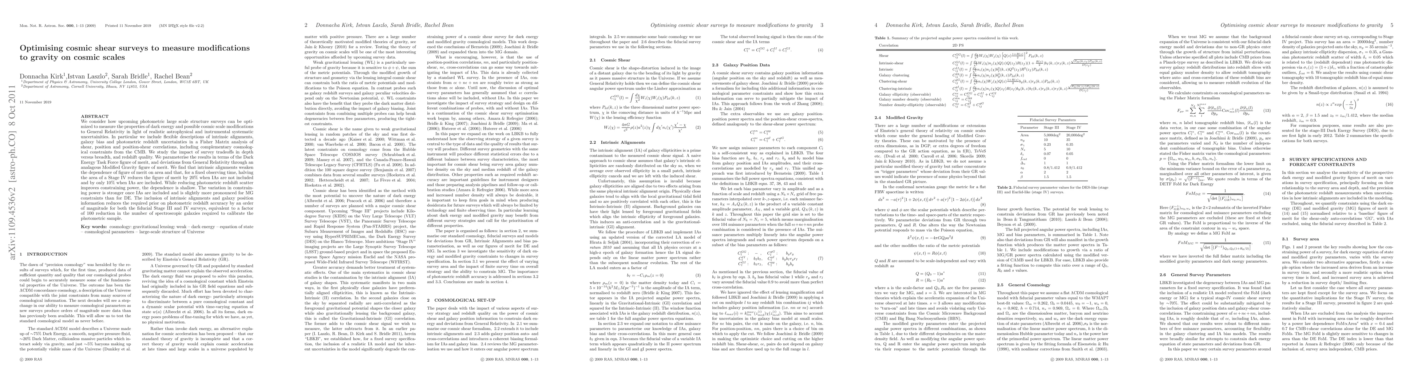 This paper optimizes upcoming large-scale structure surveys to measure dark energy and modifications to General Relativity, considering astrophysical and instrumental systematic uncertainties. It finds that intrinsic alignments weaken the dependence on survey area, and that for a fixed observing time, a Stage IV survey plateaus above 10,000 deg² for dark energy constraints.