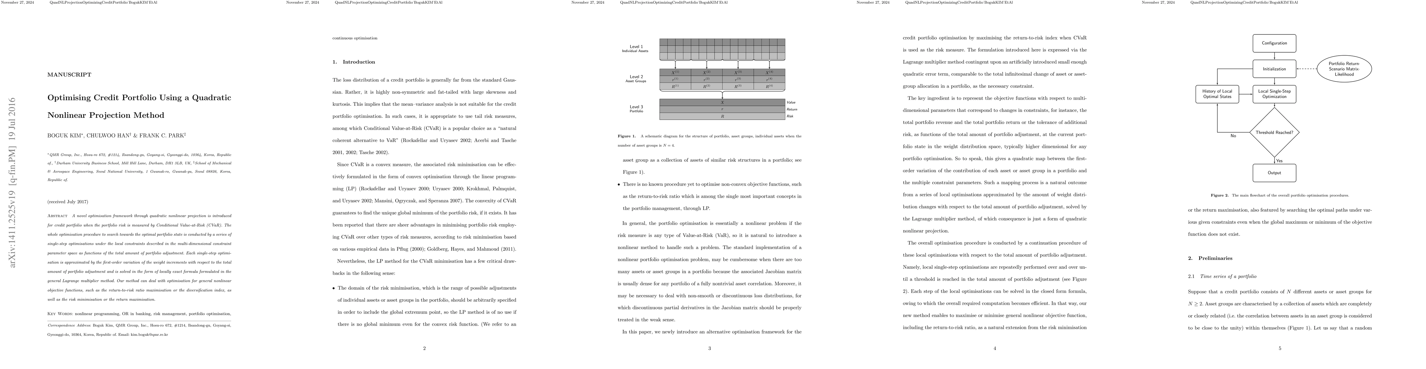 A new optimization framework using quadratic nonlinear projection is introduced to optimize credit portfolios for Conditional Value-at-Risk (CVaR) risk management. The method can handle general nonlinear objective functions and aims to maximize return while minimizing risk.
