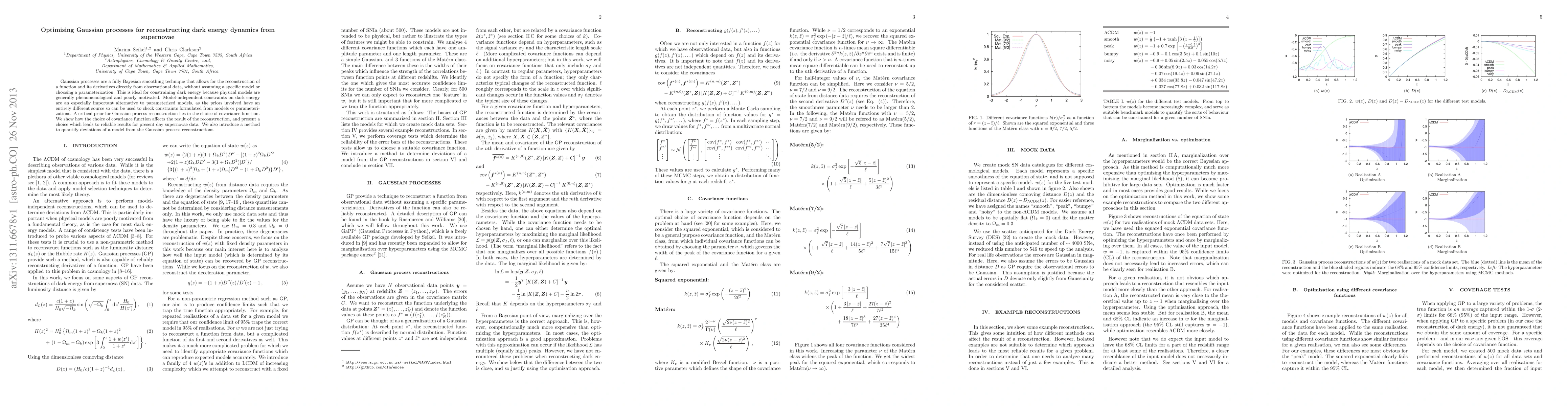 This paper explores the use of Gaussian processes for reconstructing dark energy dynamics from supernovae data, emphasizing the importance of choosing an appropriate covariance function for reliable results. It introduces a method to quantify model deviations and demonstrates its effectiveness with current supernovae data.
