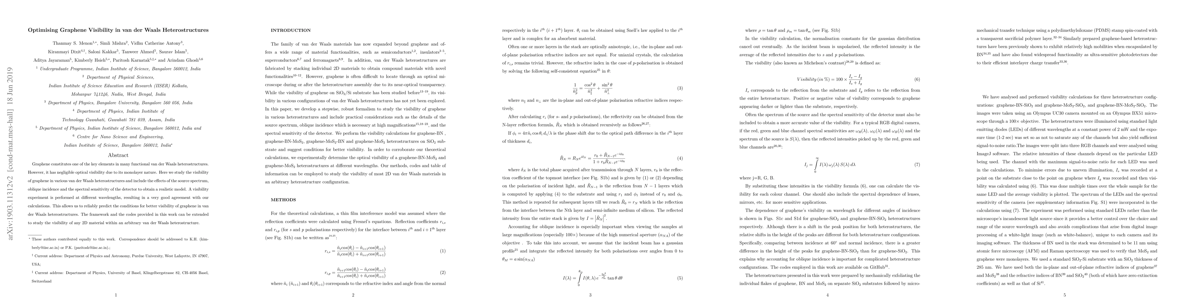 This paper investigates methods to enhance the optical visibility of graphene within van der Waals heterostructures, addressing factors such as source spectrum, oblique incidence, and detector sensitivity. Experimental results align well with theoretical models, enabling predictions for improved graphene visibility and extending the framework to other 2D materials.