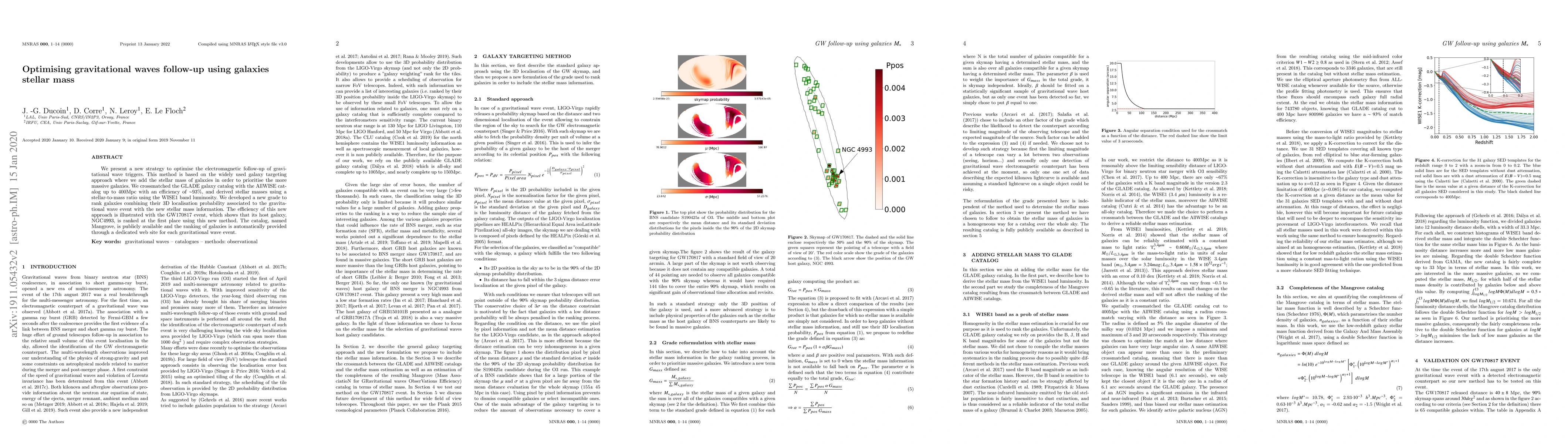 We present a new strategy to optimise the electromagnetic follow-up of gravitational wave triggers. This method is based on the widely used galaxy targeting approach where we add the stellar mass of galaxies in order to prioritise the more massive galaxies. We crossmatched the GLADE galaxy catalog with the AllWISE catalog up to 400Mpc with an efficiency of $\sim$93\%, and derived stellar masses using a stellar-to-mass ratio using the WISE1 band luminosity. We developed a new grade to rank galaxies combining their 3D localisation probability associated to the gravitational wave event with the new stellar mass information. The efficiency of this new approach is illustrated with the GW170817 event, which shows that its host galaxy, NGC4993, is ranked at the first place using this new method. The catalog, named Mangrove, is publicly available and the ranking of galaxies is automatically provided through a dedicated web site for each gravitational wave event.