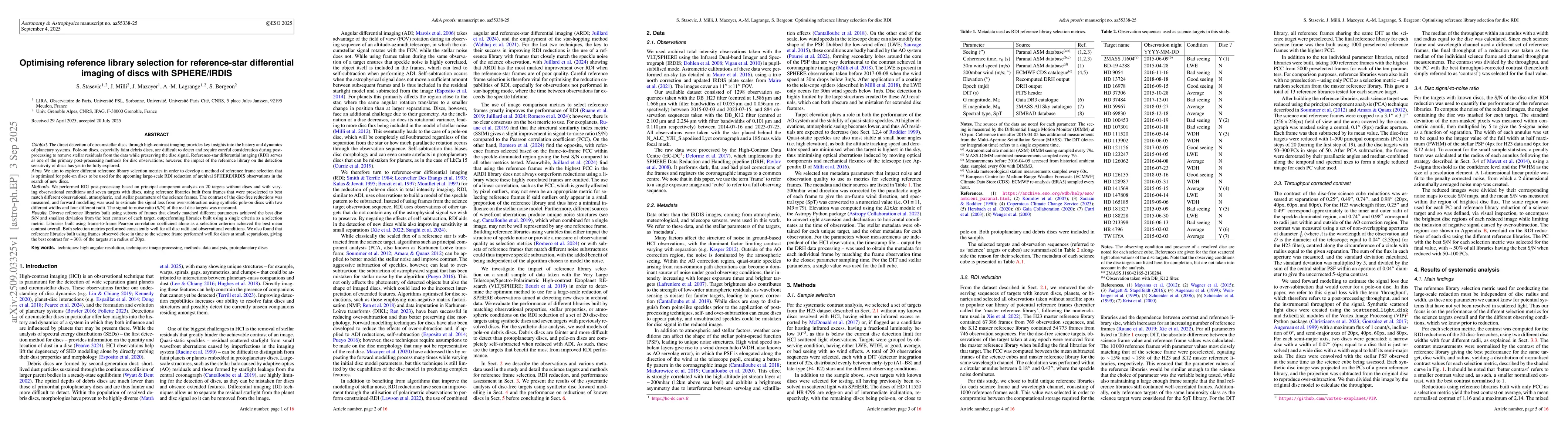 The direct detection of circumstellar discs through high-contrast imaging provides key insights into the history and dynamics of planetary systems. Pole-on discs, especially faint debris discs, are difficult to detect and require careful consideration during post-processing to remove stellar residuals from the data while preserving the disc signal. Reference-star differential imaging (RDI) serves as one of the primary post-processing methods for disc observations. We aim to develop a method of reference frame selection that is optimised for the reduction of pole-on discs. Method: We performed principal component analysis based RDI on seven known disc targets and 20 disc-free targets with varying observational conditions, using reference libraries built from frames preselected to best match different observational, atmospheric, and stellar parameters of the science frames. The contrast of the disc-free reductions was measured, and forward modelling was used to estimate the signal loss from over-subtraction using synthetic pole-on discs with two different widths and four different radii. The signal-to-noise ratio (S/N) of the real disc targets was measured. Results: Diverse reference libraries built using subsets of frames that closely matched different parameters achieved the best disc S/N and smallest deviation from the best contrast of each target, outperforming libraries built using a single criterion as a selection metric. Libraries built using frame-to-frame Pearson correlation coefficient alone as a selection criterion achieved the best mean contrast overall. Both selection metrics performed consistently well for all disc radii and observational conditions. We also found that reference libraries built using frames observed close in time to the science frame performed well for discs at small separations, giving the best contrast for ~30% of the targets at a radius of 20px.