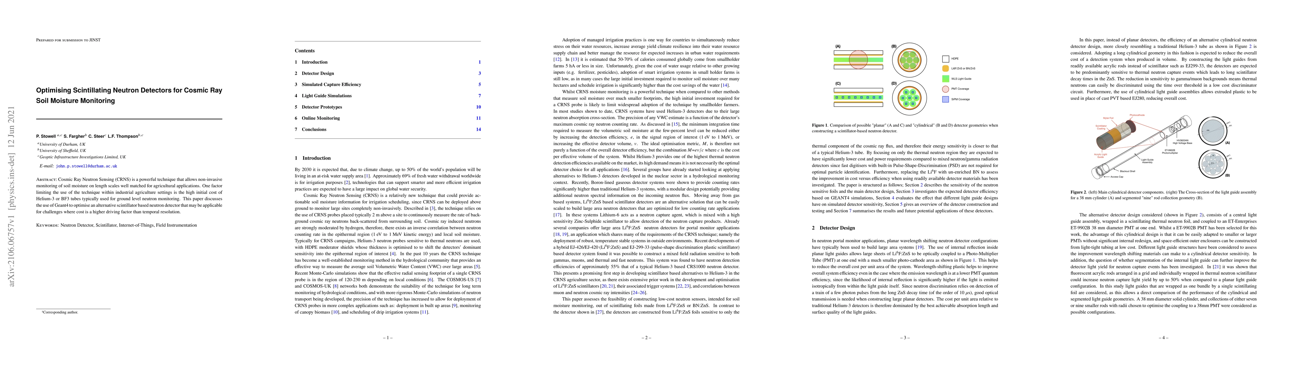 Cosmic Ray Neutron Sensing (CRNS) is a powerful technique that allows non-invasive monitoring of soil moisture on length scales well matched for agricultural applications. One factor limiting the use of the technique within industrial agriculture settings is the high initial cost of Helium-3 or BF3 tubes typically used for ground level neutron monitoring. This paper discusses the use of Geant4 to optimise an alternative scintillator based neutron detector that may be applicable for challenges where cost is a higher driving factor than temporal resolution.
