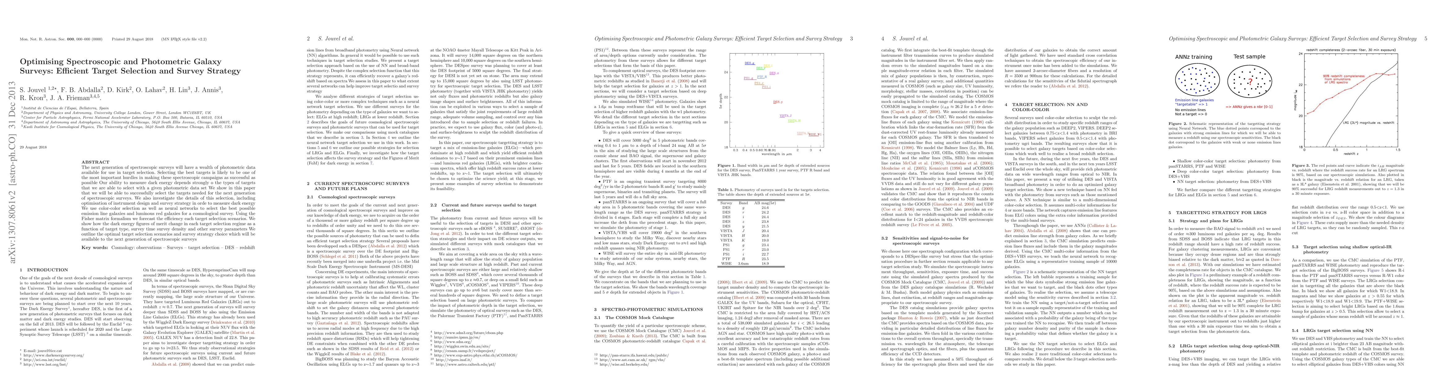 This paper explores efficient target selection and survey strategies for next-generation spectroscopic galaxy surveys, emphasizing the use of photometric data to optimize target choices. It forecasts the efficiency of various selection methods, including color-color selection and neural networks, and outlines optimal strategies for measuring dark energy.
