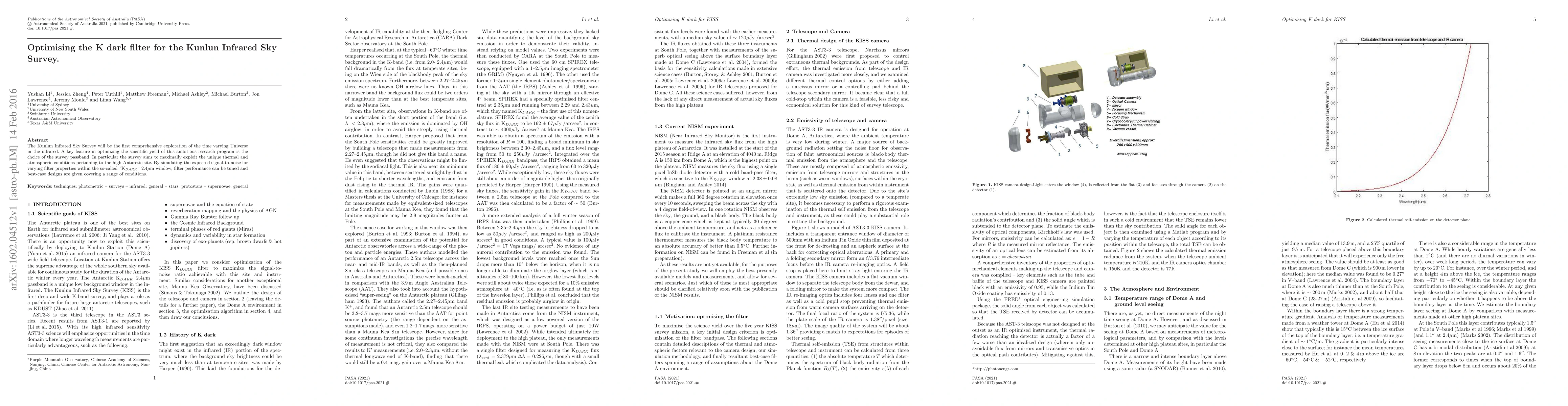 The Kunlun Infrared Sky Survey will be the first comprehensive exploration of the time varying Universe in the infrared. A key feature in optimizing the scientific yield of this ambitious research program is the choice of the survey passband. In particular the survey aims to maximally exploit the unique thermal and atmospheric conditions pertaining to the high Antarctic site. By simulating the expected signal-to-noise for varying filter properties within the so-called "K_DARK" 2.4um window, filter performance can be tuned and best-case designs are given covering a range of conditions.