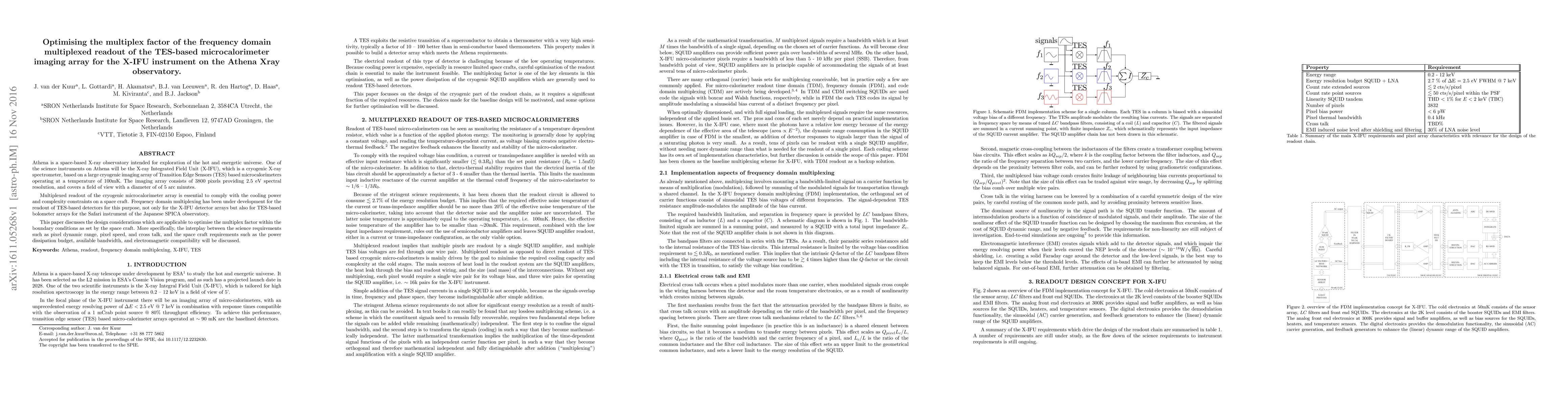 Athena is a space-based X-ray observatory intended for exploration of the hot and energetic universe. One of the science instruments on Athena will be the X-ray Integrated Field Unit (X-IFU), which is a cryogenic X-ray spectrometer, based on a large cryogenic imaging array of Transition Edge Sensors (TES) based microcalorimeters operating at a temperature of 100mK. The imaging array consists of 3800 pixels providing 2.5 eV spectral resolution, and covers a field of view with a diameter of of 5 arc minutes. Multiplexed readout of the cryogenic microcalorimeter array is essential to comply with the cooling power and complexity constraints on a space craft. Frequency domain multiplexing has been under development for the readout of TES-based detectors for this purpose, not only for the X-IFU detector arrays but also for TES-based bolometer arrays for the Safari instrument of the Japanese SPICA observatory. This paper discusses the design considerations which are applicable to optimise the multiplex factor within the boundary conditions as set by the space craft. More specifically, the interplay between the science requirements such as pixel dynamic range, pixel speed, and cross talk, and the space craft requirements such as the power dissipation budget, available bandwidth, and electromagnetic compatibility will be discussed.