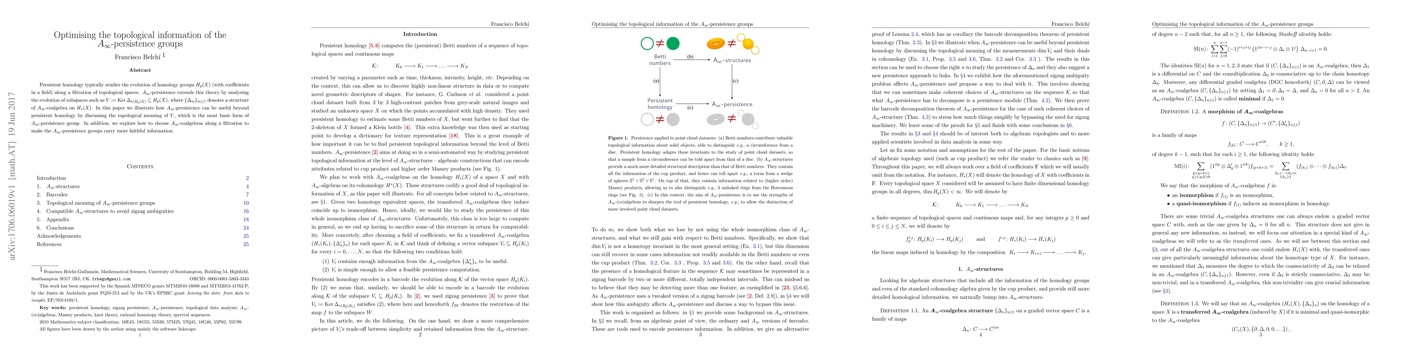 Persistent homology typically studies the evolution of homology groups $H_p(X)$ (with coefficients in a field) along a filtration of topological spaces. $A_\infty$-persistence extends this theory by analysing the evolution of subspaces such as $V := \text{Ker}\, {\Delta_n}_{| H_p(X)} \subseteq H_p(X)$, where $\{\Delta_m\}_{m\geq1}$ denotes a structure of $A_\infty$-coalgebra on $H_*(X)$. In this paper we illustrate how $A_\infty$-persistence can be useful beyond persistent homology by discussing the topological meaning of $V$, which is the most basic form of $A_\infty$-persistence group. In addition, we explore how to choose $A_\infty$-coalgebras along a filtration to make the $A_\infty$-persistence groups carry more faithful information.