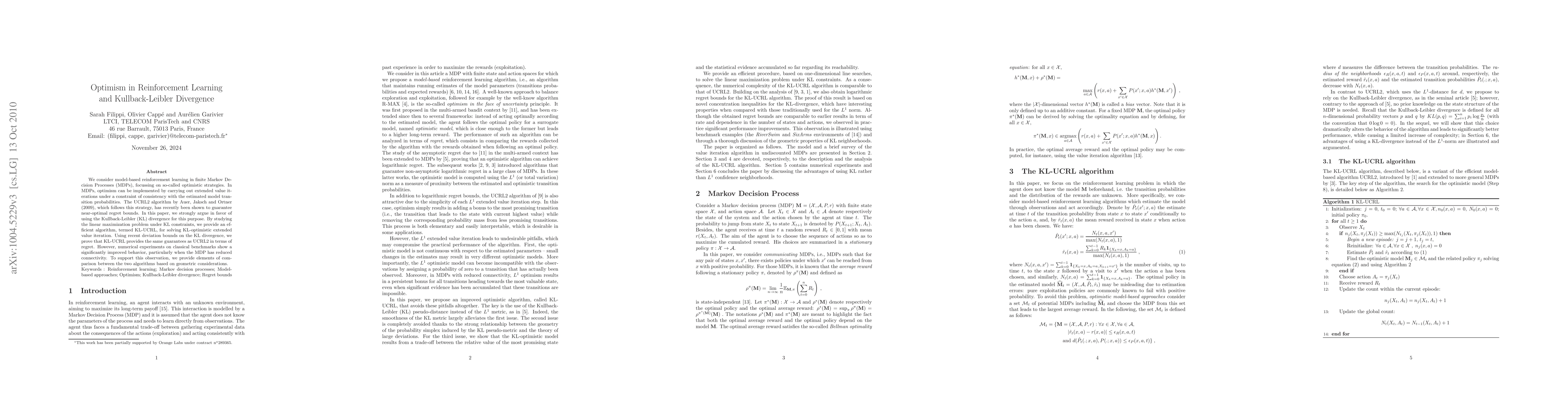 This paper proposes KL-UCRL, an algorithm that uses Kullback-Leibler divergence for optimistic strategies in model-based reinforcement learning, achieving similar regret bounds as UCRL2 but demonstrating better performance in practice, especially in sparse MDPs.