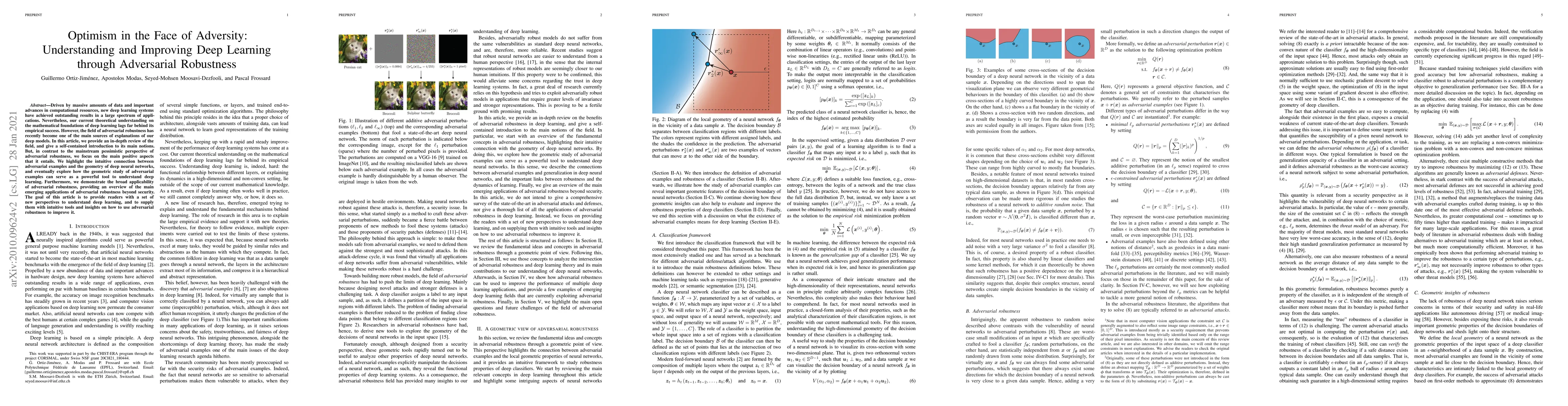 Driven by massive amounts of data and important advances in computational resources, new deep learning systems have achieved outstanding results in a large spectrum of applications. Nevertheless, our current theoretical understanding on the mathematical foundations of deep learning lags far behind its empirical success. Towards solving the vulnerability of neural networks, however, the field of adversarial robustness has recently become one of the main sources of explanations of our deep models. In this article, we provide an in-depth review of the field of adversarial robustness in deep learning, and give a self-contained introduction to its main notions. But, in contrast to the mainstream pessimistic perspective of adversarial robustness, we focus on the main positive aspects that it entails. We highlight the intuitive connection between adversarial examples and the geometry of deep neural networks, and eventually explore how the geometric study of adversarial examples can serve as a powerful tool to understand deep learning. Furthermore, we demonstrate the broad applicability of adversarial robustness, providing an overview of the main emerging applications of adversarial robustness beyond security. The goal of this article is to provide readers with a set of new perspectives to understand deep learning, and to supply them with intuitive tools and insights on how to use adversarial robustness to improve it.