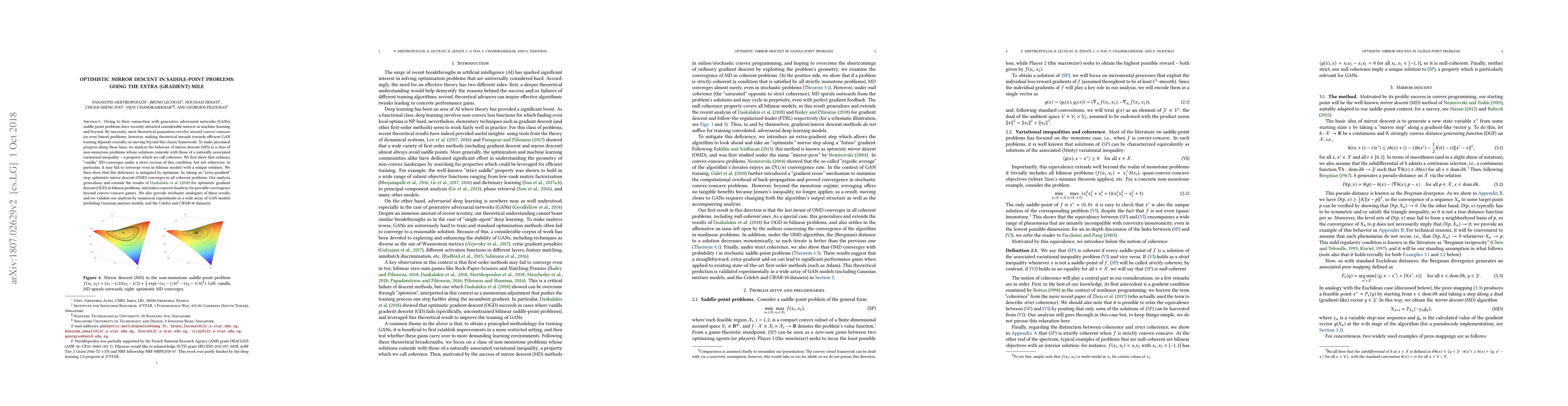 This paper investigates optimistic mirror descent (OMD) for saddle-point problems, especially in non-convex-concave settings relevant to generative adversarial networks (GANs). It demonstrates that while "vanilla" mirror descent may fail to converge in non-monotone problems, OMD, with an "extra-gradient" step, ensures convergence in such coherent problems, extending prior results for optimistic gradient descent.
