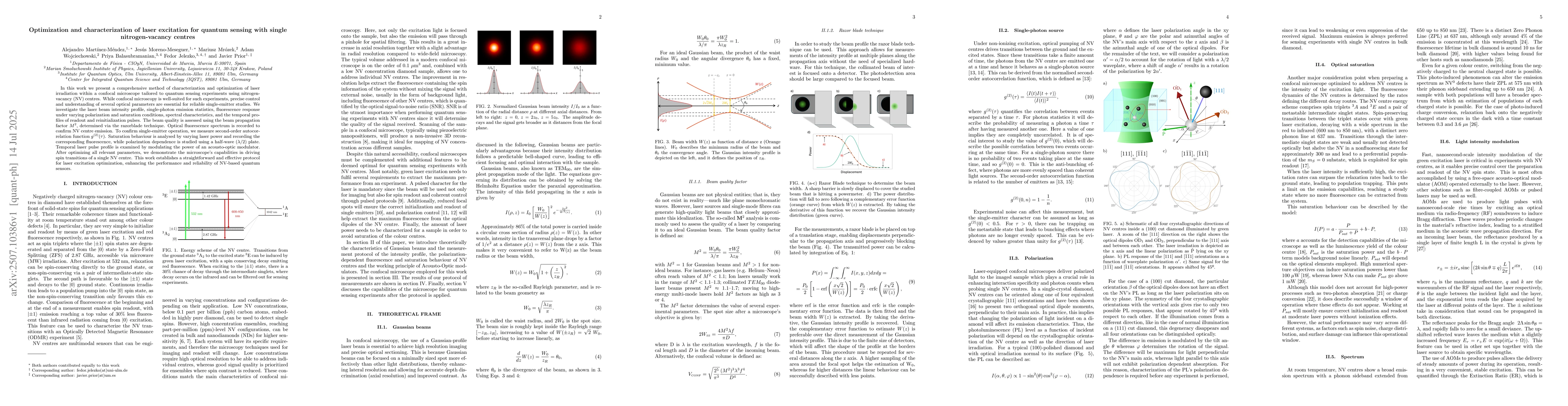 In this work we present a comprehensive method of characterization and optimization of laser irradiation within a confocal microscope tailored to quantum sensing experiments using nitrogen-vacancy (NV) centres. While confocal microscopy is well-suited for such experiments, precise control and understanding of several optical parameters are essential for reliable single-emitter studies. We investigate the laser beam intensity profile, single-photon emission statistics, fluorescence response under varying polarization and saturation conditions, spectral characteristics, and the temporal profiles of readout and reinitialization pulses. The beam quality is assessed using the beam propagation factor $M^2$, determined via the razorblade technique. Optical fluorescence spectrum is recorded to confirm NV centre emission. To confirm single-emitter operation, we measure second-order autocorrelation function $g^{(2)}(\tau)$. Saturation behaviour is analysed by varying laser power and recording the corresponding fluorescence, while polarization dependence is studied using a half-wave ($\lambda/2$) plate. Temporal laser pulse profile is examined by modulating the power of an acousto-optic modulator. After optimizing all relevant parameters, we demonstrate the microscope's capabilities in driving spin transitions of a single NV centre. This work establishes a straightforward and effective protocol for laser excitation optimization, enhancing the performance and reliability of NV-based quantum sensors.