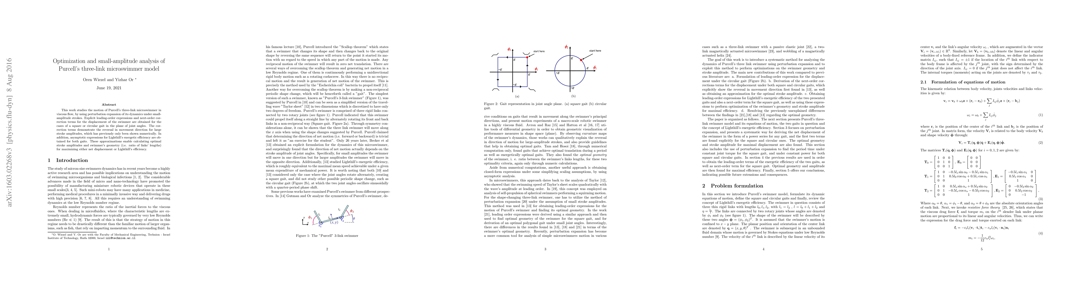 Researchers optimized Purcell's three-link microswimmer model for maximum displacement and efficiency in viscous flow, revealing key effects of stroke amplitude on movement direction and energetic efficiency.