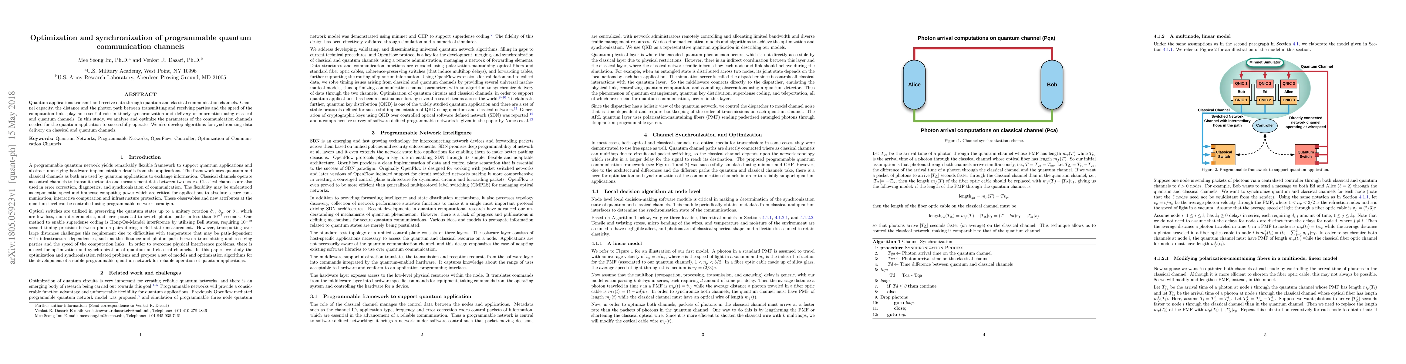 Quantum applications transmit and receive data through quantum and classical communication channels. Channel capacity, the distance and the photon path between transmitting and receiving parties and the speed of the computation links play an essential role in timely synchronization and delivery of information using classical and quantum channels. In this study, we analyze and optimize the parameters of the communication channels needed for the quantum application to successfully operate. We also develop algorithms for synchronizing data delivery on classical and quantum channels.