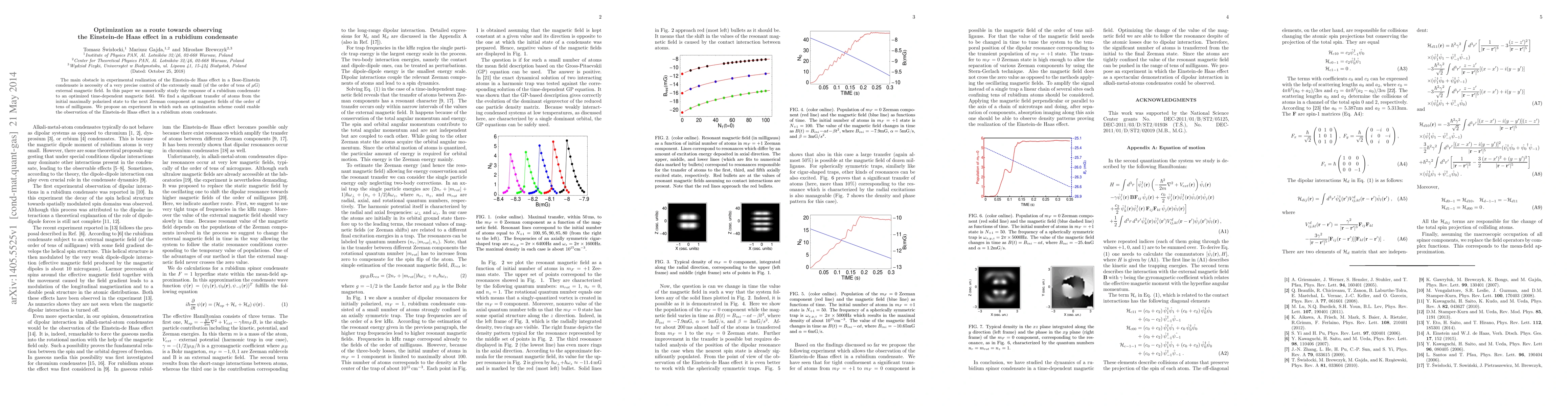 This paper explores the optimization of a time-dependent magnetic field to observe the Einstein-de Haas effect in a rubidium condensate, finding significant atom transfer at magnetic fields of tens of milligauss. It proposes an optimized experimental setup that could enable the observation of this effect.