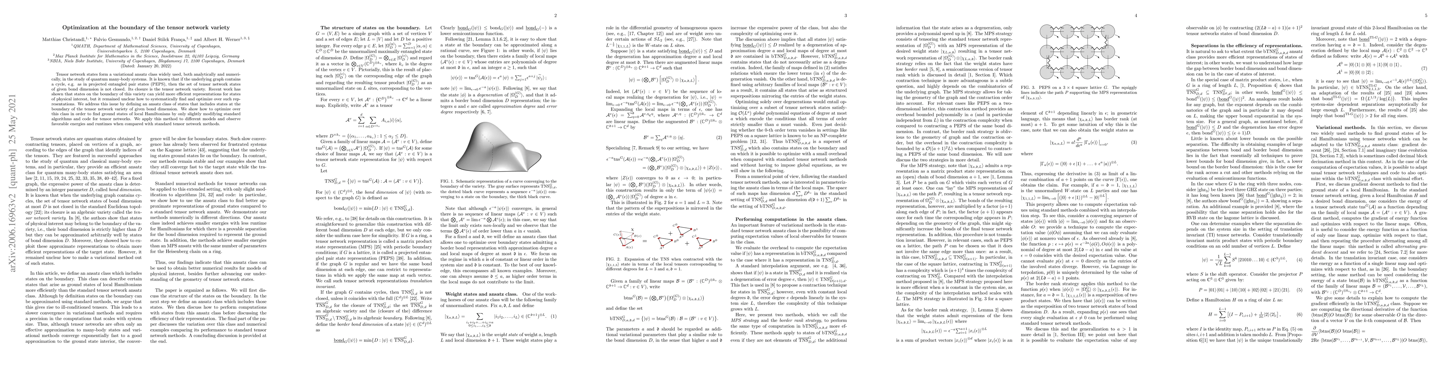 Tensor network states form a variational ansatz class widely used, both analytically and numerically, in the study of quantum many-body systems. It is known that if the underlying graph contains a cycle, e.g. as in projected entangled pair states (PEPS), then the set of tensor network states of given bond dimension is not closed. Its closure is the tensor network variety. Recent work has shown that states on the boundary of this variety can yield more efficient representations for states of physical interest, but it remained unclear how to systematically find and optimize over such representations. We address this issue by defining a new ansatz class of states that includes states at the boundary of the tensor network variety of given bond dimension. We show how to optimize over this class in order to find ground states of local Hamiltonians by only slightly modifying standard algorithms and code for tensor networks. We apply this new method to a different of models and observe favorable energies and runtimes when compared with standard tensor network methods.