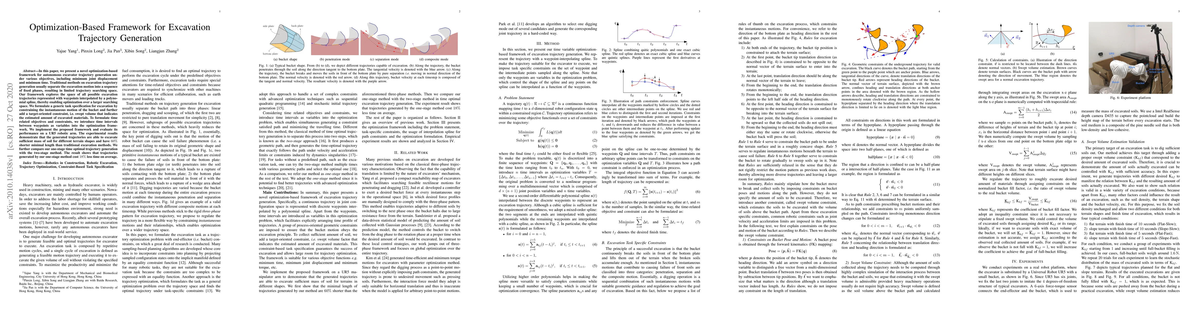 A new optimization-based framework generates more efficient excavation trajectories by exploring a larger searching space, resulting in 60% shorter minimal lengths compared to traditional methods.