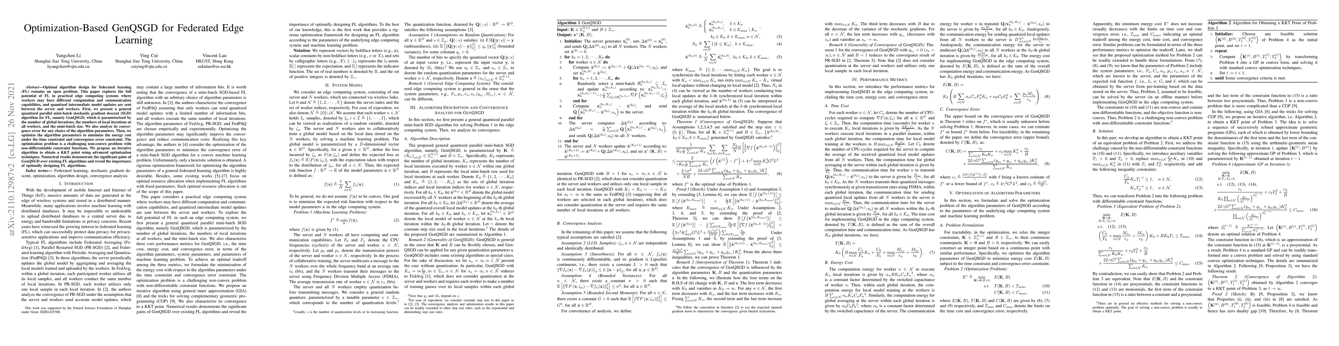 This paper presents GenQSGD, an optimized algorithm for federated learning that minimizes energy cost while meeting convergence and time constraints, achieving significant gains over existing algorithms.