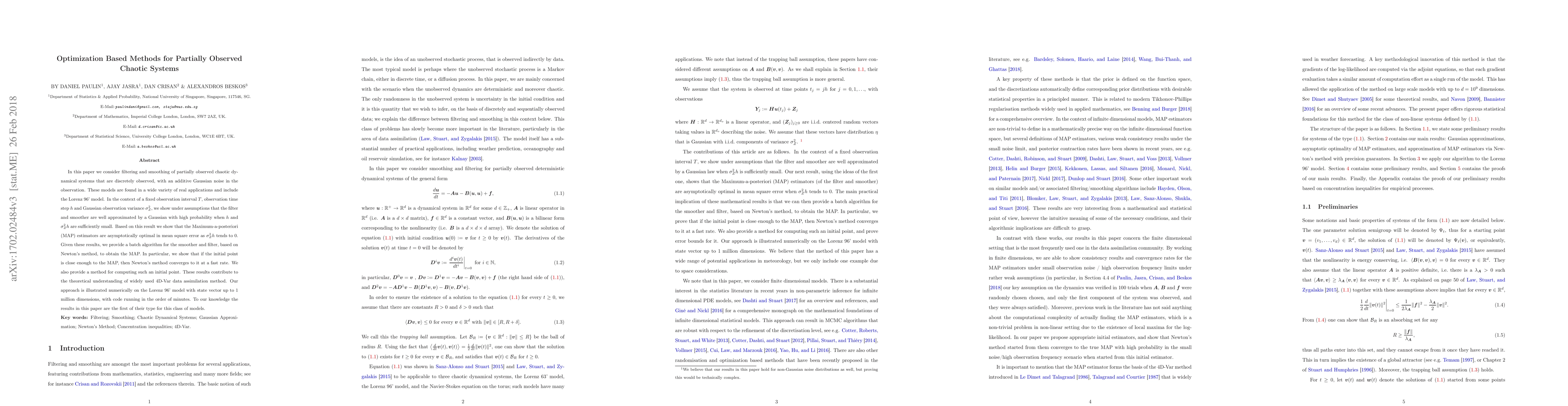 This paper explores filtering and smoothing techniques for discretely observed chaotic dynamical systems with Gaussian noise, demonstrating that Maximum-a-posteriori estimators are asymptotically optimal. It provides a batch algorithm based on Newton's method for efficient computation, illustrated numerically on the Lorenz 96' model.