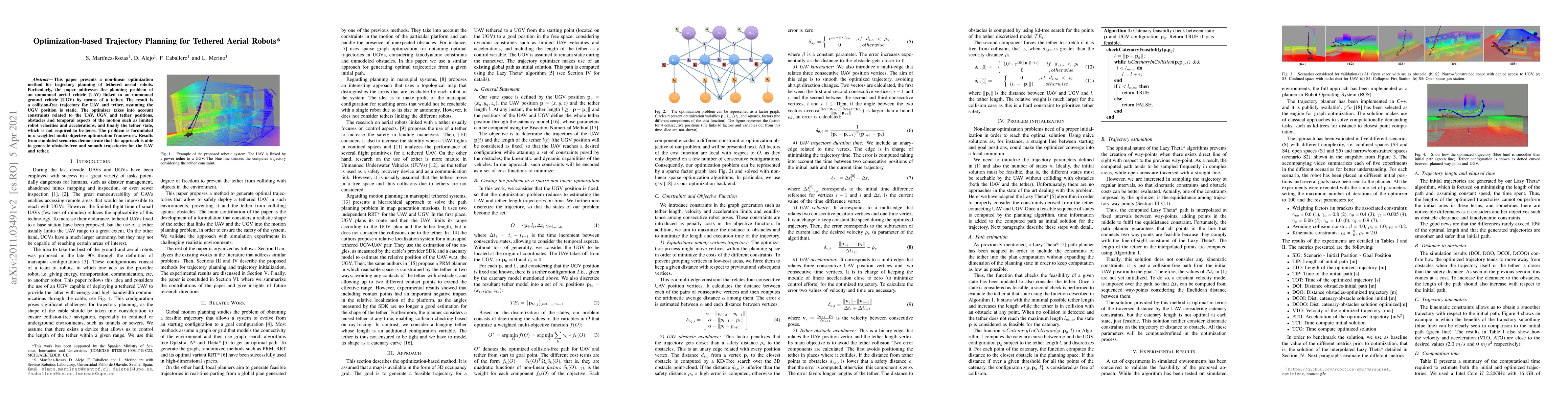 This paper proposes a non-linear optimization method for planning collision-free trajectories for tethered aerial robots, considering constraints on UAV, UGV, and tether dynamics. Simulation results show successful generation of smooth, obstacle-free paths.
