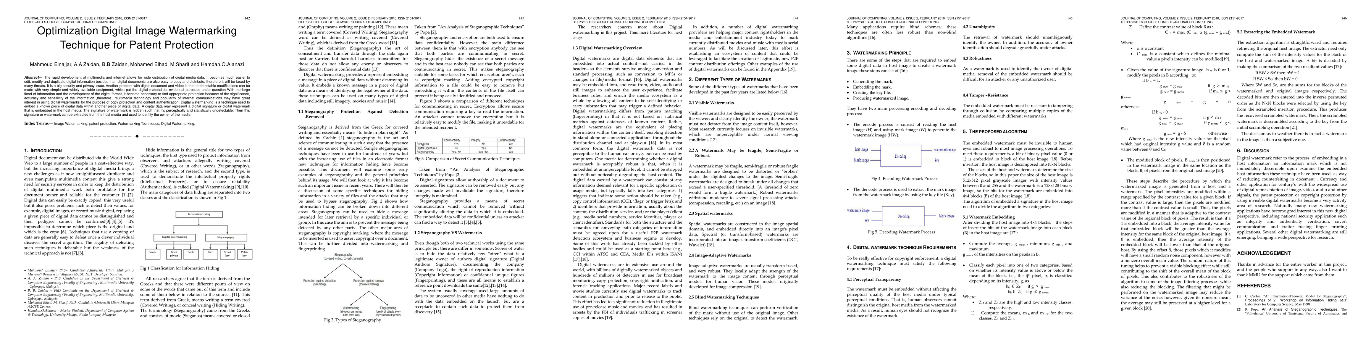 The rapid development of multimedia and internet allows for wide distribution of digital media data. It becomes much easier to edit, modify and duplicate digital information besides that, digital documents are also easy to copy and distribute, therefore it will be faced by many threats. It is a big security and privacy issue. Another problem with digital document and video is that undetectable modifications can be made with very simple and widely available equipment, which put the digital material for evidential purposes under question With the large flood of information and the development of the digital format, it become necessary to find appropriate protection because of the significance, accuracy and sensitivity of the information, therefore multimedia technology and popularity of internet communications they have great interest in using digital watermarks for the purpose of copy protection and content authentication. Digital watermarking is a technique used to embed a known piece of digital data within another piece of digital data .A digital data may represent a digital signature or digital watermark that is embedded in the host media. The signature or watermark is hidden such that it's perceptually and statistically undetectable. Then this signature or watermark can be extracted from the host media and used to identify the owner of the media.