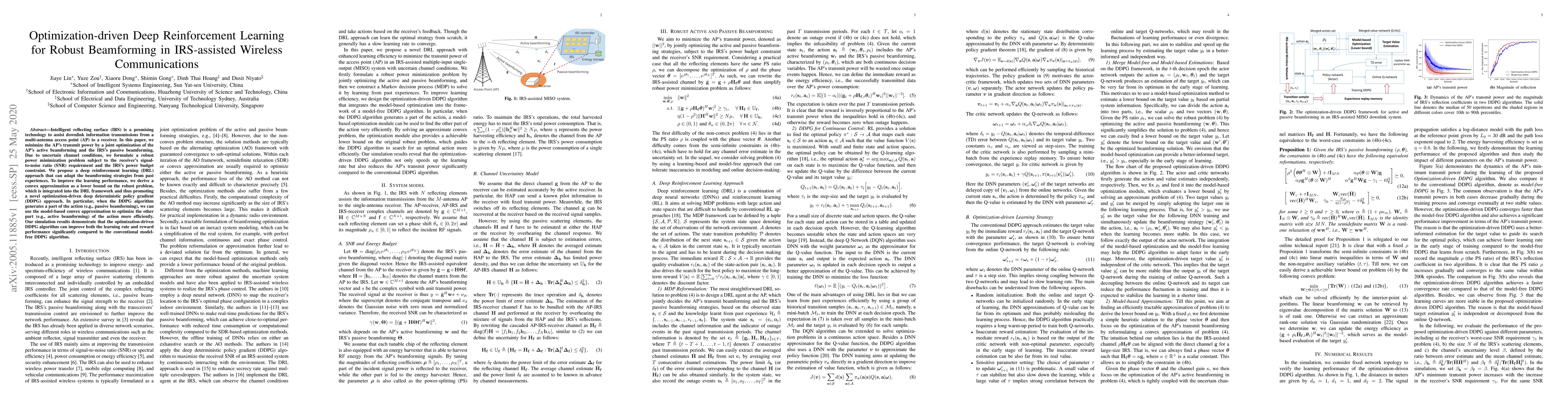 This paper proposes an optimization-driven deep reinforcement learning approach for robust beamforming in IRS-assisted wireless communication systems, aiming to minimize transmit power by jointly optimizing active and passive beamforming. The method integrates a convex approximation into the deep deterministic policy gradient framework to enhance learning efficiency and performance.
