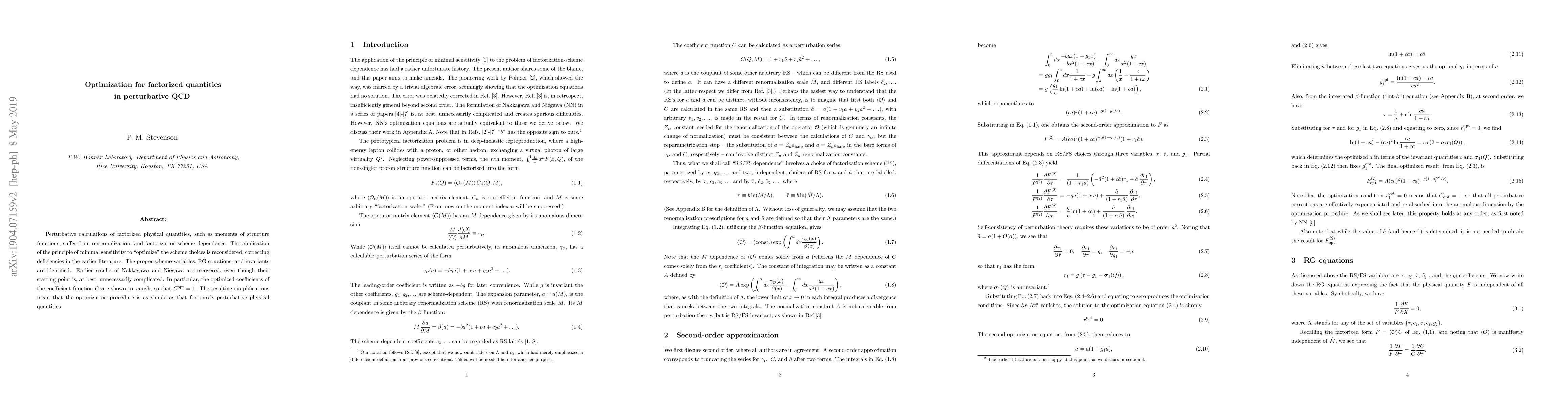 Perturbative calculations of factorized physical quantities, such as moments of structure functions, suffer from renormalization- and factorization-scheme dependence. The application of the principle of minimal sensitivity to "optimize" the scheme choices is reconsidered, correcting deficiencies in the earlier literature. The proper scheme variables, RG equations, and invariants are identified. Earlier results of Nakkagawa and Niegawa are recovered, even though their starting point is, at best, unnecessarily complicated. In particular, the optimized coefficients of the coefficient function C are shown to vanish, so that C^opt=1. The resulting simplifications mean that the optimization procedure is as simple as that for purely-perturbative physical quantities.