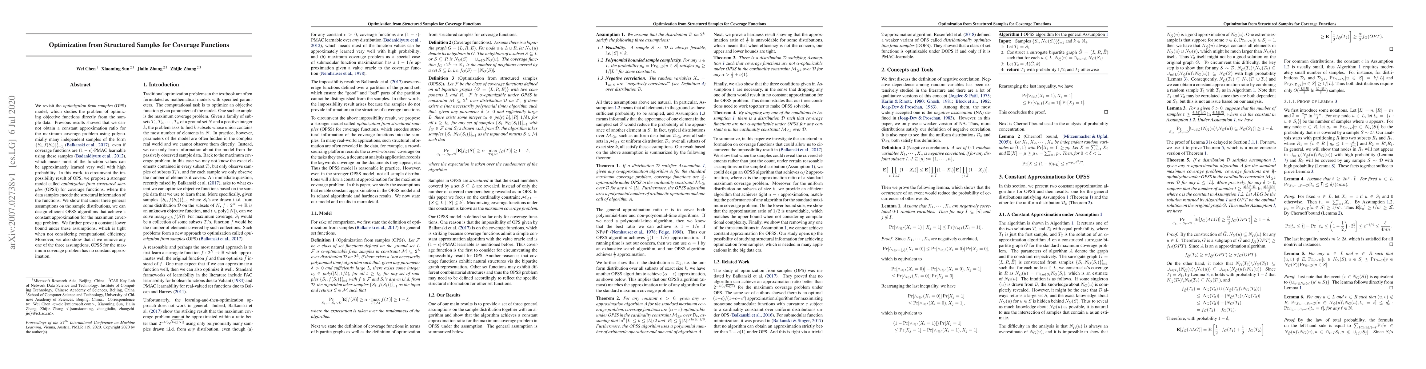 Researchers propose a new approach called optimization from structured samples (OPSS) to solve the maximum coverage problem, which can achieve constant approximation ratios under certain assumptions. This work addresses limitations of previous models by leveraging structural information in data samples.