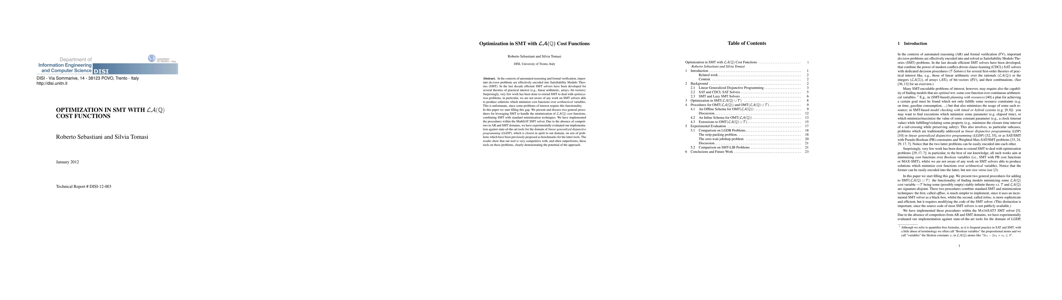 This paper introduces two procedures to leverage Satisfiability Modulo Theories (SMT) for minimizing LA(Q) cost functions, filling a gap in optimization within SMT. The proposed approach was implemented in MathSAT and demonstrated competitive performance against state-of-the-art tools for linear generalized disjunctive programming.