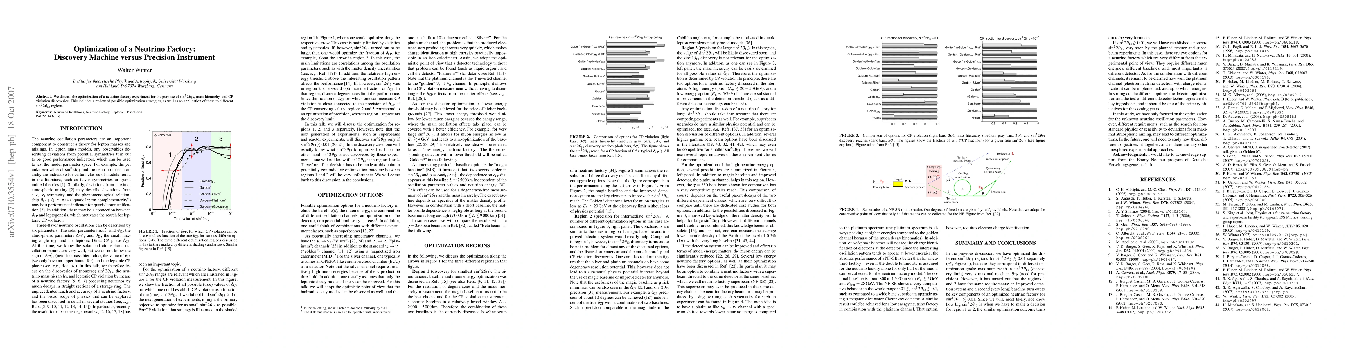 We discuss the optimization of a neutrino factory experiment for the purpose of sin^2(2theta_13), mass hierarchy, and CP violation discoveries. This includes a review of possible optimization strategies, as well as an application of these to different sin^2(2theta_13) regions.