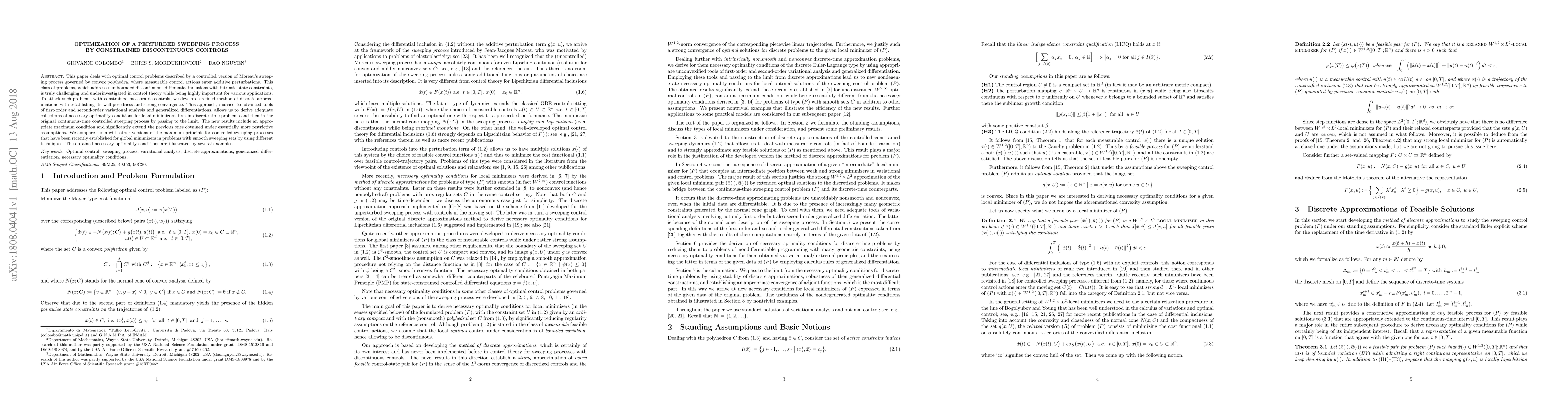 This paper presents a novel method for optimizing complex, unbounded, discontinuous differential equations with constraints, known as perturbed sweeping processes. By developing discrete approximations and using advanced variational analysis, the authors derive new necessary optimality conditions for local minimizers. These conditions extend previous findings and are illustrated with examples, offering significant implications for control theory applications.