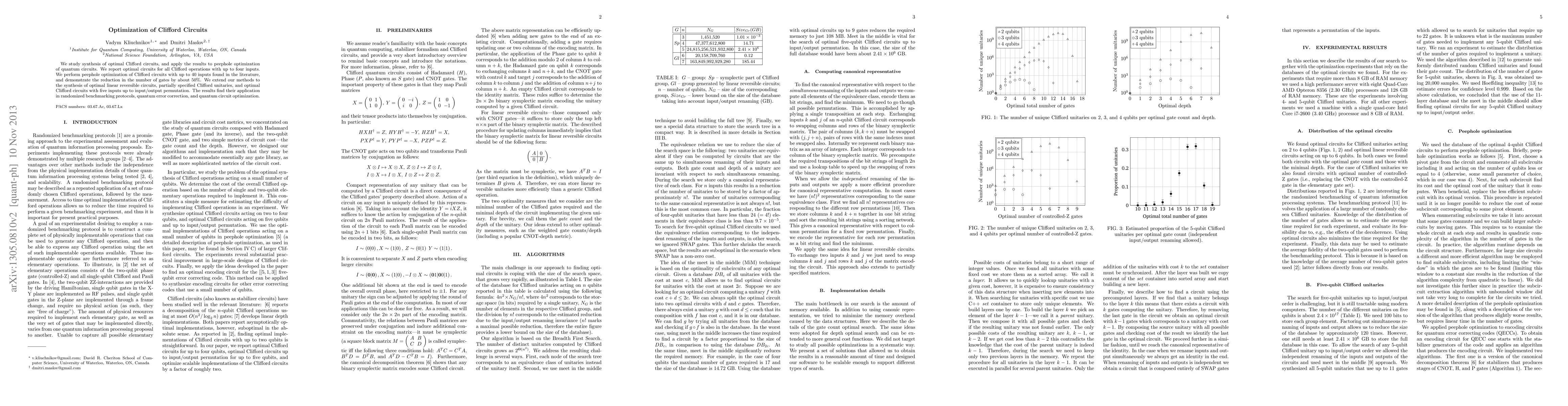 This paper optimizes Clifford circuits for quantum computing, achieving significant reductions in gate count through peep-hole optimization and extending methods to linear reversible circuits and partially specified functions. The findings are applicable to quantum error correction and randomized benchmarking protocols.
