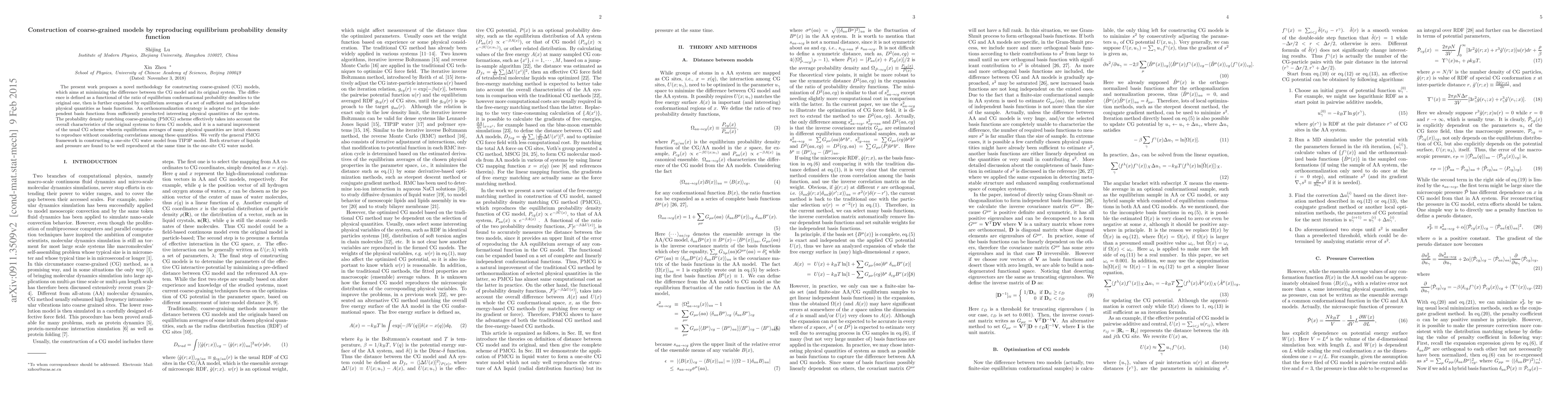 This research introduces a novel methodology to construct effective Coarse-Grained (CG) models by minimizing the distance between CG and Atomic (AA) models' equilibrium probability densities in conformational space. The method uses variational techniques to optimize CG force field parameters, ensuring the CG model reproduces both equilibrium physical quantities and pressure of the AA model. The approach is validated by creating a one-site CG water model from TIP3P water model.