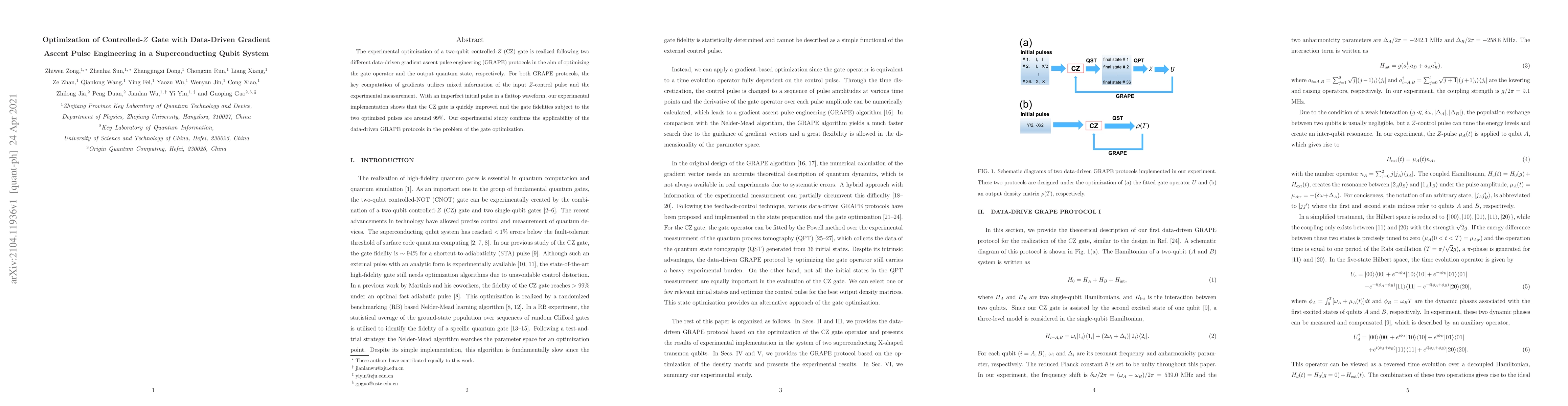 This paper presents an optimization of a two-qubit controlled-Z gate using data-driven gradient ascent pulse engineering (GRAPE) in a superconducting qubit system, achieving gate fidelities of around 99%. The study demonstrates the effectiveness of GRAPE protocols in improving gate performance through gradient computations based on mixed input and measurement data.