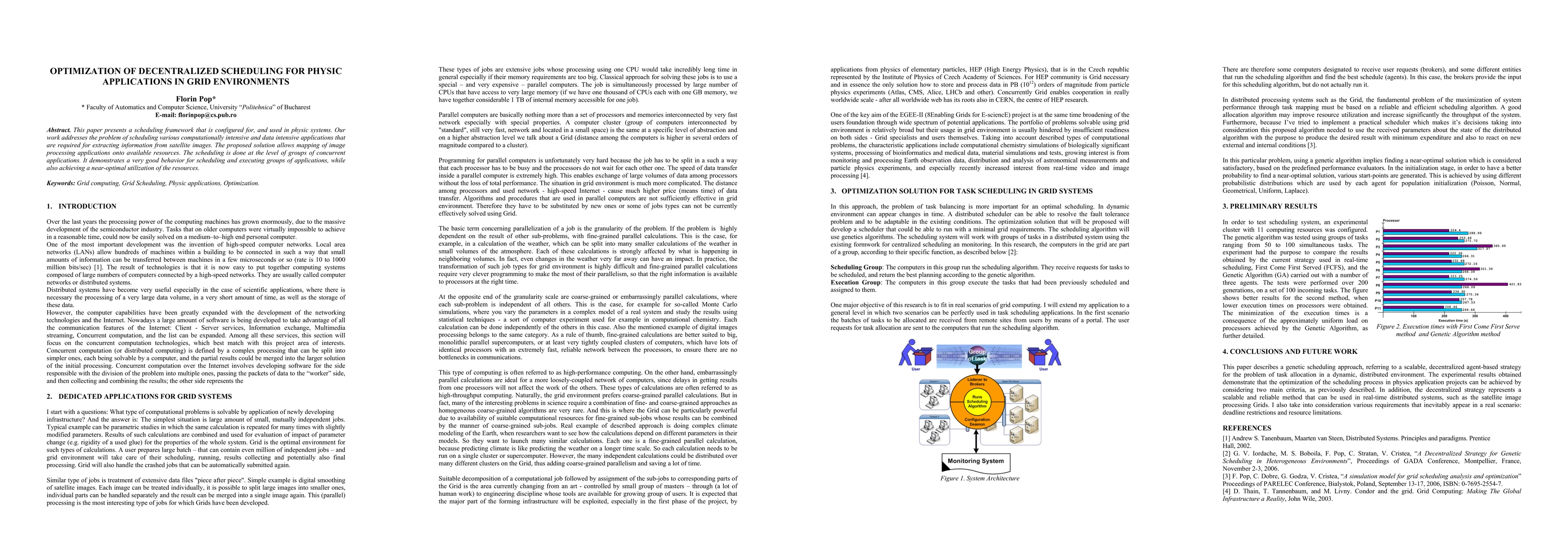 This paper presents a scheduling framework that is configured for, and used in physic systems. Our work addresses the problem of scheduling various computationally intensive and data intensive applications that are required for extracting information from satellite images. The proposed solution allows mapping of image processing applications onto available resources. The scheduling is done at the level of groups of concurrent applications. It demonstrates a very good behavior for scheduling and executing groups of applications, while also achieving a near-optimal utilization of the resources.