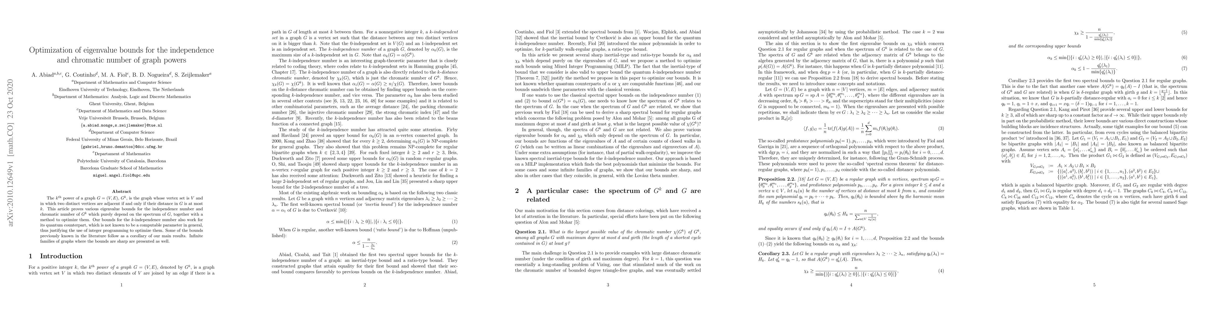 This paper optimizes eigenvalue bounds for the independence and chromatic numbers of graph powers, deriving new bounds that depend solely on the spectrum of the original graph and showing their applicability to quantum independence numbers. It also presents families of graphs where these bounds are optimal.
